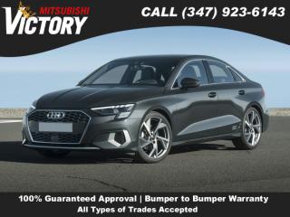 Comments Welcome to Victory Mitsubishi! We offer a combined inventory of 700 cars new and luxury used vehicles. All Used vehicles come with a quality assurance inspection, our New Vehicles have an unprecedented 10-year 100k mile warranty we also have vehicles car for any want or purpose. Come into test drive this car for any want or purpose. Come in to test drive this Audi A3 today! *. Clean CARFAX. 2024 Audi A3 FrontTrak Black 4D Sedan Save yourself Time and Money - Fill out a credit application online at victorymitsubishi.com and get pre-APPROVED! Financing available for all types of credit with low monthly payment that will fit you budget. Down Payment low as $599. Same day delivery. View our entire inventory by visiting our virtual showroom at victorymitsubishi.com - Only 2 blocks away from Exit 13 off I-95 or Minutes from exit 7 on the Hutchinson Parkway. While we make every effort to ensure the data listed here is correct, there may be instances where the pricing, options or vehicle features may be listed incorrectly. Dealer cannot be held liable for data that is listed incorrectly. to see more pictures of this vehicle or call us at (347) 923-6143 today to schedule your test drive. please refer to dealer’s website for exact pricing and for any incentives that we may apply! Our address is 4070 Boston Road, Bronx, NY 10475. * Options Wheels: 17" 5-Arm Design, Heated Front Bucket Seats, Leather Seating Surfaces, Radio: MMI w/10.1" Touchscreen Display, 4-Wheel Disc Brakes, Auto High-beam Headlights, Exterior Parking Camera Rear, Speed-Sensitive Wipers, Front beverage holders, Variably intermittent wipers, Turn signal indicator mirrors, Trip computer, Traction control, Tilt steering wheel, Telescoping steering wheel, Steering wheel mounted audio controls, Split folding rear seat, Speed-sensing steering, Speed control, Security system, Remote keyless entry, Rear window defroster, Rear side impact airbag, Rear seat center armrest, Rear reading lights, Rear fog lights, Rear anti-roll bar, Rear air conditioning, Rain sensing wipers, Radio data system, Power windows, Power steering, Power passenger seat, Power moonroof, Power driver seat, Power door mirrors, Passenger vanity mirror, Passenger door bin, Panic alarm, Overhead console, Overhead airbag, Outside temperature display, Occupant sensing airbag, Low tire pressure warning, Leather steering wheel, Knee airbag, Illuminated entry, Heated front seats, Heated door mirrors, Fully automatic headlights, Front reading lights, Front dual zone A/C, Front anti-roll bar, Four wheel independent suspension, Emergency communication system, Dual front side impact airbags, Dual front impact airbags, Driver vanity mirror, Driver door bin, Delay-off headlights, Bumpers: body-color, Brake assist, Automatic temperature control, Alloy wheels, AM/FM radio, ABS brakes, Tachometer, Front Center Armrest, Front Bucket Seats, Electronic Stability Control, Air Conditioning, 6 Speakers