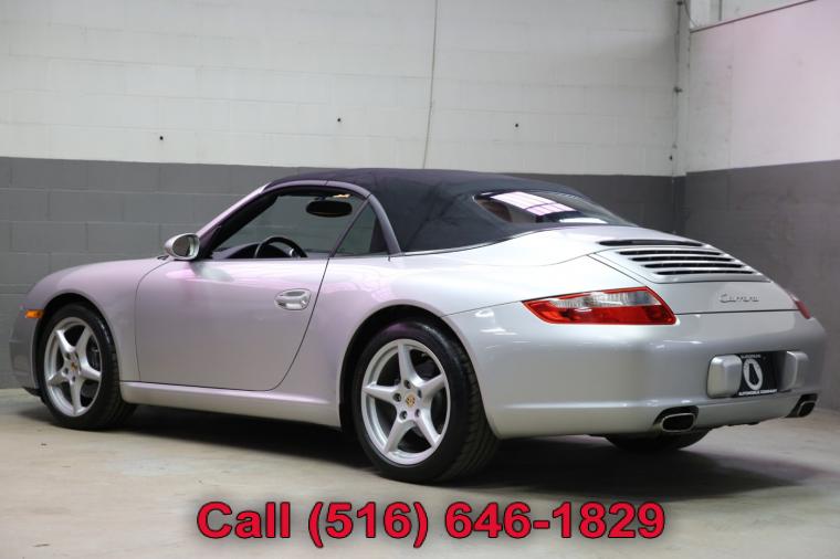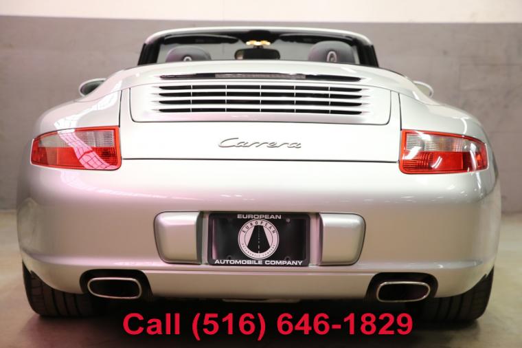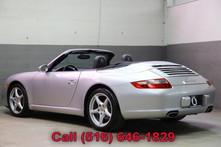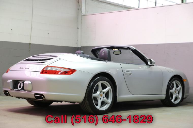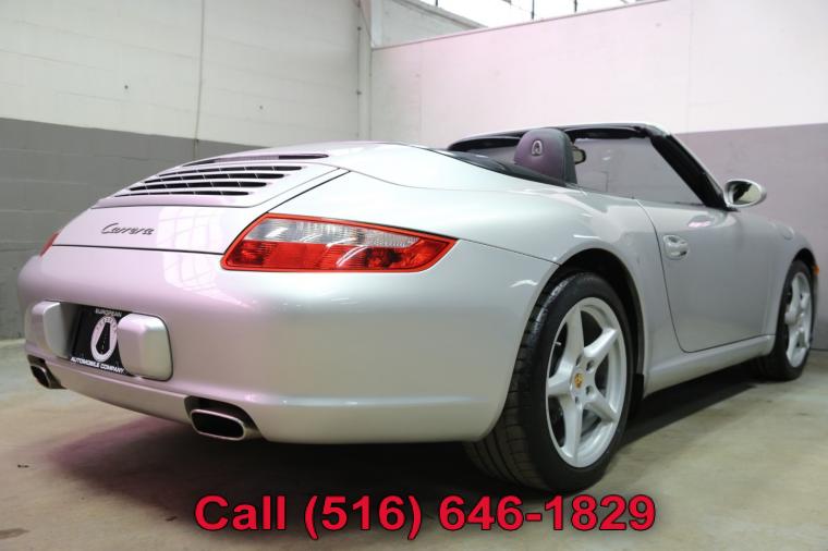 2007 Porsche 911 Carrera Cabriolet finished with an Arctic Silver Metallic exterior and Black leather interior. Driven just 49,924 careful miles since new. Options on this 911 Carrera include a Tiptronic Automatic Transmission, Heated Front Seats, Power Seat Package, Porsche Crest in Headrest, Sport Chrono Plus Package, BiXenon Headlamp Package, CD Changer, Wheel Caps with Colored Crests, Bose High End Sound Package, Self Dimming Mirrors and much more. This 911 Carrera Cabriolet just underwent an oil and fluid service within the last 20 miles and it drives even better than it looks. The water cooled 6 cylinder engine is strong and powerful and the Tiptronic automatic transmission shifts effortlessly through all of the gears. The steering is tight and precise and the brakes feel just great. All of the electronics work properly and the air conditioning is ice cold. This really is a fantastic Porsche to drive. The interior is really nice. The Black leather seats are in excellent condition (see pictures) showing just minimal wear to the seats. The dashboard looks great and even the carpets don't look or feel like they have been stepped on thanks to the Porsche floor mats that have been protecting them. The exterior is what really sets this particular 2007 911 Carrera Cabriolet apart from the rest. The Arctic Silver Metallic paint is in fantastic condition (see pictures) with no major scratches or dings anywhere at all. The paint is bright and shiny with plenty of luster. Add the optional alloy wheels mounted on great tires and this Porsche really does look special. The 2007 Porsche 911 Carrera Cabriolet really is the ultimate exotic car. It has iconic and timeless looks, fantastic performance, a power convertible top for open air fun along with all of Porsche's legendary safety, craftsmanship and reliability. The only real apologies to this 911 Carrera are a few typical nicks and chips (see pictures) and button wear that is to be expected on all of them (see pictures). Please feel free to call me (Matt 516-646-1829) with any additional questions you may have.
