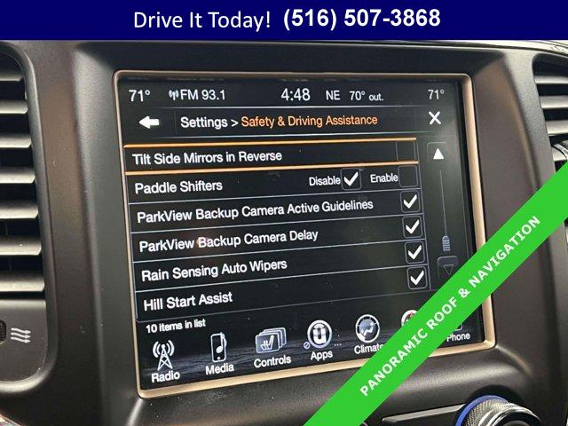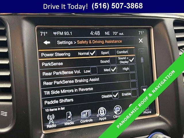 TRANSMISSION: 8-SPEED AUTOMATIC (845RE) (STD), ENGINE: 3.6L V6 24V VVT UPG I W/ESS (STD), DIAMOND BLACK CRYSTAL PEARLCOAT, RADIO: UCONNECT 3C NAV W/8.4 DISPLAY -inc: Instrument Cluster w/Off-Road Disp Pages HD Radio Rear View Auto Dim Mirror Integrated Voice Command w/Bluetooth 5-Year SiriusXM Travel Link Service GPS Navigation 5-Year SiriusXM Traffic Service SiriusXM Travel Link Roadside Assistance & 9-1-1 Call SiriusXM Traffic Uconnect Access For Details Visit DriveUconnect.com 8.4 Touchscreen Display, QUICK ORDER PACKAGE 23H -inc: Engine: 3.6L V6 24V VVT UPG I w/ESS Transmission: 8-Speed Automatic (845RE), WHEELS: 18 X 8.0 TECH GRAY ALUMINUM (STD), 9 AMPLIFIED SPEAKERS W/SUBWOOFER, LUXURY GROUP II -inc: Power Tilt/Telescope Steering Column 9 Amplified Speakers w/Subwoofer Rain Sensitive Windshield Wipers Radio: Uconnect 3C w/8.4 Display Roadside Assistance & 9-1-1 Call Instrument Cluster w/Off-Road Disp Pages Uconnect Access For Details Visit DriveUconnect.com 8.4 Touchscreen Display Integrated Voice Command w/Bluetooth Nav-Capable! See Dealer for Details Automatic Headlamp Leveling System Ventilated Front Seats Bi-Xenon HID Headlamps 506 Watt Amplifier Cargo Compartment Cover Auto High Beam Headlamp Control LED Fog Lamps LED Daytime Running Headlamps Dual-Pane Panoramic Sunroof, NORMAL DUTY SUSPENSION (STD), MANUFACTURER'S STATEMENT OF ORIGIN, 3.45 REAR AXLE RATIO (STD), GVWR: 6 500 LBS (STD), BLACK LEATHER TRIMMED SEATS W/PERFORATED INSERTS, TIRES: P265/60R18 BSW AS LRR (STD)