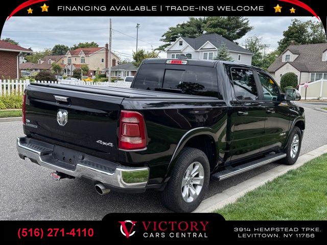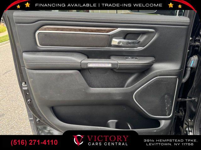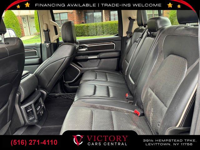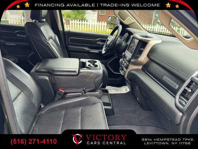 • All pricing and details are believed to be accurate, but we do not warrant or guarantee such accuracy. The prices shown above may vary from region to region, as will incentives, and are subject to change. All cars are sold cosmetically As-Is. Vehicle information is based on standard equipment and may vary from vehicle to vehicle. Call or email for complete vehicle specific information. Price Does not include tax, title, license, destination charges, finance charges, or any reconditioning fees. Our special Internet pricing cannot be extended without a printed copy of the online pricing. The in-store price may exceed our special online pricing. Sorry but we cannot extend special pricing without a printed copy of the on-line pricing. To take advantage of our special Internet discounts, please print this page and present it to your salesperson at the BEGINNING of the transaction. Special Internet pricing posted on this ad/coupon/promotion is only available to customers who reference such pricing & present the ad at time of sale otherwise our store standard list price applies. Please be advised this ad is a Special Internet only ad. Prices can be modified and adjusted weekly, daily and sometimes hourly due to inquiries, bidding and website traffic on any Vehicles. All displayed inventory is subject to prior sale and all prices expire at midnight on the date displayed. Every reasonable effort has been made to ensure the accuracy of the information contained on this site, however absolute accuracy cannot be guaranteed. Advertised special excludes state tax, title, license, registration, NY state inspection, NYS tire recycling fee, finance charges, and dealer fees if applicable. Please verify any information in question with the dealership sales manager. This is easily done by calling us at (516) 271-4110 or by visiting us at the dealership. **With approved credit. Diamond Black Crystal Pearlcoat 2019 Ram 1500 Laramie 4WD 8-Speed Automatic HEMI 5.7L V8 Multi Displacement VVT