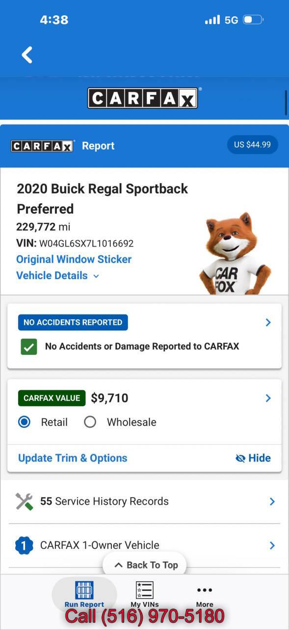 For more information on this 2020 Buick Regal, please call Car Father at (516) 970-5180 or with the contact form on this page. This vehicle's vin number is W04GL6SX7L1016692 and is recorded as being in stock at Car Father at 4214 Austin Blvd in Island Park. See all cars from this dealership.