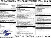 BEGIN THE SIMPLE PROCESS. PERSONALIZE THE PAYMENTS THAT FIT YOUR BUDGET, ADD YOUR TRADE-IN INFORMATION, APPLY FOR YOUR AUTO LOAN, SCHEDULE A PICKUP OR DELIVERY DATE. (HOME DELIVERY AVAILABLE*). EVERY VEHICLE HAS BEEN PRICED BELOW COST IN ORDER TO TURN INVENTORY QUICKLY AND PASS ON THE SAVINGS TO YOU! EACH VEHICLE COMES WITH A FREE LIMITED POWERTRAIN WARRANTY AND FREE CARFAX REPORT! WITH THESE SAVINGS THESE VEHICLES WONT LAST. CALL TO GET YOUR GREAT DEAL TODAY! (516) 774-3706.