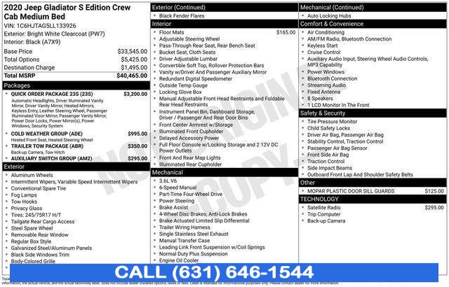For more information on this 2020 Jeep Gladiator, please call Stream Auto Outlet Islip at (631) 646-1544 or with the contact form on this page. This vehicle's vin number is 1C6HJTAG5LL133926 and is recorded as being in stock at Stream Auto Outlet Islip at 2232 Sunrise Hwy in Islip. See all cars from this dealership.