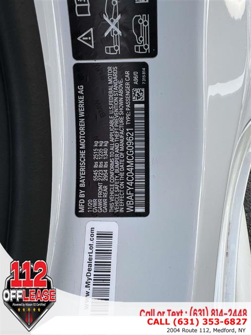 For more information on this 2021 BMW M850i, please call 112 Off Lease at (631) 353-6827 or with the contact form on this page. This vehicle's vin number is WBAFY4C04MCG09621 and is recorded as being in stock at 112 Off Lease at 2004 Route 112 in Medford. See all cars from this dealership.