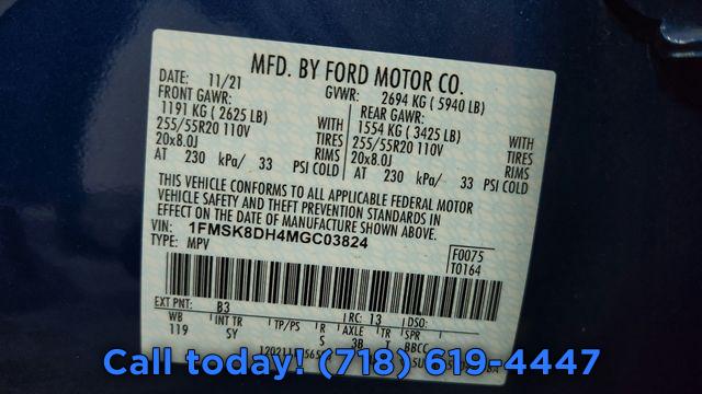 Equipment Group 202A, 3.58 Non-Limited-Slip Rear Axle Ratio, Wheels: 18" 5-Spoke Sparkle Silver-Painted Alum, Wheels: 20" 10-Spoke Carbonized Gray-Painted, Unique Cloth Captain's Chairs, ActiveX Captain's Chairs, 2nd Row 35/30/35 Bench w/E-Z Entry & Armrest, AM/FM Stereo, XLT Sport Appearance Package, Twin Panel Moonroof, Front License Plate Bracket, Acoustic-Laminated Front Side Windows, FordPass Connect, LED Fog Lamps, 1st Row Heated Seats, Heated Steering Wheel, Remote Start System, SYNC 3 Communications & Entertainment System, 4-Wheel Disc Brakes, SYNC 3/Apple CarPlay/Android Auto, Emergency communication system: SYNC 3 911 Assist, Auto High-beam Headlights, Exterior Parking Camera Rear, AM/FM radio: SiriusXM, Compass, Speed-Sensitive Wipers, Front beverage holders, Variably intermittent wipers, Trip computer, Traction control, Tilt steering wheel, Telescoping steering wheel, Steering wheel mounted audio controls, Split folding rear seat, Speed-sensing steering, Speed control, Security system, Roof rack: rails only, Remote keyless entry, Rear window wiper, Rear window defroster, Rear reading lights, Rear anti-roll bar, Rear air conditioning, Power windows, Power steering, Power passenger seat, Power driver seat, Power door mirrors, Passenger vanity mirror, Passenger door bin, Panic alarm, Overhead console, Overhead airbag, Outside temperature display, Occupant sensing airbag, Low tire pressure warning, Leather steering wheel, Knee airbag, Illuminated entry, Heated front seats, Heated door mirrors, Fully automatic headlights, Front reading lights, Front dual zone A/C, Front anti-roll bar, Four wheel independent suspension, Dual front side impact airbags, Dual front impact airbags, Driver vanity mirror, Driver door bin, Delay-off headlights, Bumpers: body-color, Brake assist, Automatic temperature control, Alloy wheels, ABS brakes, 3rd row seats: bench, Tachometer, Spoiler, Power Liftgate, Front Center Armrest, Front Bucket Seats, Electronic Stability Control, Air Conditioning, 6 Speakers