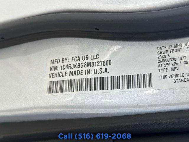 WHEELS: 20 X 8.5 POLISHED/PAINTED ALUMINUM -inc: Bridgestone Brand Tires Tires: 265/50R20 BSW A/S LRR (DISC), ENGINE: 3.6L V6 24V VVT UPG I W/ESS (STD), TRANSMISSION: 8-SPEED AUTOMATIC (850RE) (STD), TIRES: 265/50R20 BSW A/S LRR, GLOBAL BLACK CAPRI LEATHER SEATS, DUAL PANE PANORAMIC SUNROOF -inc: Interior Rear Facing Camera, RADIO: UCONNECT 5 NAV W/10.1 DISPLAY -inc: premium 9 speaker alpine audio system 10.1 Touchscreen Display 9 Amplified Speakers w/Subwoofer HD Radio GPS Navigation 506 Watt Amplifier Connected Travel & Traffic Services, QUICK ORDER PACKAGE 22E -inc: Engine: 3.6L V6 24V VVT UPG I w/ESS Transmission: 8-Speed Automatic (850RE), SILVER ZYNITH, Four Wheel Drive, Power Steering, ABS, 4-Wheel Disc Brakes, Brake Assist, Aluminum Wheels, Temporary Spare Tire, Heated Mirrors, Power Mirror(s), Integrated Turn Signal Mirrors, Rear Defrost, Privacy Glass, Intermittent Wipers, Variable Speed Intermittent Wipers, Rear Spoiler, Remote Trunk Release, Power Liftgate, Power Door Locks, Daytime Running Lights, Automatic Headlights, LED Headlights, Fog Lamps, Automatic Highbeams, AM/FM Stereo, Satellite Radio, Bluetooth Connection, HD Radio, Requires Subscription, Premium Sound System, MP3 Capability, Steering Wheel Audio Controls, Auxiliary Audio Input, Premium Sound System, Satellite Radio, HD Radio, Requires Subscription, Satellite Radio, HD Radio, Requires Subscription, Power Driver Seat, Power Passenger Seat, Mirror Memory, Driver Adjustable Lumbar, Seat Memory, Heated Front Seat(s), Power Driver Seat, Driver Adjustable Lumbar, Power Passenger Seat, Passenger Adjustable Lumbar, Bucket Seats, Rear Bucket Seats, Heated Rear Seat(s), Adjustable Steering Wheel, Trip Computer, Power Windows, WiFi Hotspot, 3rd Row Seat, Leather Steering Wheel, Heated Steering Wheel, Keyless Entry, Power Door Locks, Keyless Start, Keyless Entry, Power Door Locks, Universal Garage Door Opener, Cruise Control, Adaptive Cruise Control, Climate Control, Multi-Zone A/C, A/C, A/C, Rear A/C, Woodgrain Interior Trim, Leather Seats, Bucket Seats, Driver Vanity Mirror, Passenger Vanity Mirror, Driver Illuminated Vanity Mirror, Passenger Illuminated Visor Mirror, Floor Mats, Mirror Memory, Seat Memory, Remote Engine Start, Keyless Start, Smart Device Integration, Smart Device Integration, Bluetooth Connection, Power Windows, Power Door Locks, Trip Computer, Security System, Immobilizer, Traction Control, Stability Control, Traction Control, Front Side Air Bag, Telematics, Requires Subscription, Rear Parking Aid, Blind Spot Monitor, Cross-Traffic Alert, Rear Collision Mitigation, Lane Departure Warning, Lane Keeping Assist, Lane Departure Warning, Front Collision Mitigation, Tire Pressure Monitor, Driver Air Bag, Passenger Air Bag, Front Head Air Bag, Rear Head Air Bag, Passenger Air Bag Sensor, Knee Air Bag, Child Safety Locks, Back-Up Camera