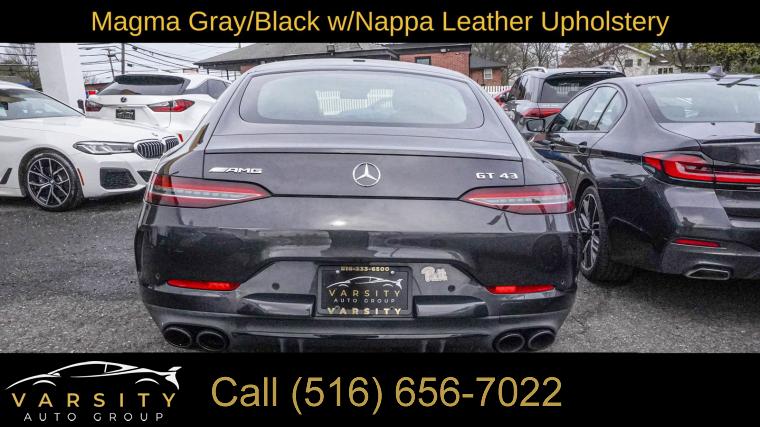2021 Mercedes-Benz AMG GT 43 Base 4MATIC, Graphite Gray Metallic, Magma Gray/Black w/Nappa Leather Upholstery, AMG Night Package, Driver Assistance Package, Burmester Surround Sound System, Apple CarPlay/Android Auto, Clean CARFAX, AMG Performance Exhaust System, 14 Speakers, 4-Wheel Disc Brakes, ABS brakes, Active Blind Spot Assist, Active Brake Assist w/Cross-Traffic Function, Active Distance Assist DISTRONIC®, Active Emergency Stop Assist, Active Lane Change Assist, Active Lane Keeping Assist, Active Speed Limit Assist, Active Steering Assist, Adaptive suspension, Air Conditioning, Alloy wheels, AM/FM radio: SiriusXM, AMG® Light Display, AMG® Night Package, AMG® Night Package (P60), AMG® Perf Nappa/Black Piano Lacquer Steering Wheel, AMG® Performance Exhaust System, Apple CarPlay®/Android Auto®, Auto High-beam Headlights, Auto tilt-away steering wheel, Auto-dimming door mirrors, Auto-dimming Rear-View mirror, Automatic temperature control, Black Chrome Exhaust Tips, Black Front Splitter, Black Mirror Covers, Black Rear Diffuser Insert, Black Side Sill Inserts, Black Window Trim, Brake assist, Bumpers: body-color, Burmester® High-End 3D Surround Sound System, Burmester® Surround Sound System, Child-Seat-Sensing Airbag, Compass, Dashcam, Delay-off headlights, designo® Black DINAMICA Headliner, Driver Assistance Package, Driver Assistance Package (23P), Driver door bin, Driver vanity mirror, Dual front impact airbags, Dual front side impact airbags, Electronic Stability Control, Emergency communication system: Mercedes me connect, Evasive Steering Assist, Extended Restart by Stop & Go Traffic, Exterior Parking Camera Rear, Four wheel independent suspension, Front anti-roll bar, Front Bucket Seats, Front Center Armrest, Front dual zone A/C, Front reading lights, Fully automatic headlights, Garage door transmitter, Glass Sunroof, Head restraints memory, Head-Up Display w/AMG® Specific Content, Heated & Ventilated Front Seats, Heated door mirrors, Heated Steering Wheel, Heated Windshield, Illuminated entry, Knee airbag, Leather Shift Knob, Local Component Code, Low tire pressure warning, MBUX Augmented Video, Memory seat, Nappa Leather Upholstery, Navigation System, Occupant sensing airbag, Outside temperature display, Overhead airbag, Overhead console, Panic alarm, Passenger door bin, Passenger vanity mirror, Power adjustable front head restraints, Power door mirrors, Power driver seat, Power Front Bucket Seats, Power Liftgate, Power moonroof, Power passenger seat, Power steering, Power windows, PRE-SAFE® PLUS Rear-End Collision Protection, Premium audio system: MBUX, Radio data system, Radio: MBUX Infotainment and Navigation System, Rain sensing wipers, Rear anti-roll bar, Rear reading lights, Rear window defroster, Remote keyless entry, Route-Based Speed Adaptation, Security system, Speed control, Speed-sensing steering, Speed-Sensitive Wipers, Spoiler, Sport steering wheel, Steering wheel memory, Steering wheel mounted audio controls, Tachometer, Telescoping steering wheel, Tilt steering wheel, Traction control, Traffic Sign Assist, Trip computer, Turn signal indicator mirrors, Variably intermittent wipers, Wheels: 21" x 10" Fr/21" x 11.5" Rr AMG® Forged. Graphite Gray Metallic 2021 Mercedes-Benz AMG® GT 43 Base 4MATIC® 4MATIC® 9-Speed Automatic I6