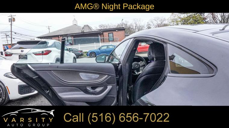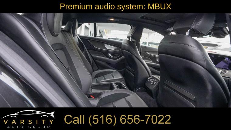 Navigation System, AMG® Night Package, AMG® Night Package (P60), Driver Assistance Package, Driver Assistance Package (23P), 14 Speakers, AM/FM radio: SiriusXM, Burmester® Surround Sound System, Premium audio system: MBUX, Radio data system, Radio: MBUX Infotainment and Navigation System, Air Conditioning, Automatic temperature control, Front dual zone A/C, Rear window defroster, Head restraints memory, Memory seat, Power driver seat, Power steering, Power windows, Remote keyless entry, Steering wheel memory, Steering wheel mounted audio controls, Adaptive suspension, AMG® Perf Nappa/Black Piano Lacquer Steering Wheel, Four wheel independent suspension, Speed-sensing steering, Traction control, 4-Wheel Disc Brakes, ABS brakes, Child-Seat-Sensing Airbag, Dual front impact airbags, Dual front side impact airbags, Emergency communication system: Mercedes me connect, Front anti-roll bar, Knee airbag, Low tire pressure warning, Occupant sensing airbag, Overhead airbag, Power adjustable front head restraints, Rear anti-roll bar, Glass Sunroof, Power moonroof, Black Front Splitter, Power Liftgate, Active Blind Spot Assist, Active Lane Keeping Assist, Brake assist, Electronic Stability Control, Exterior Parking Camera Rear, Auto High-beam Headlights, Delay-off headlights, Fully automatic headlights, Black Chrome Exhaust Tips, Panic alarm, Security system, Active Distance Assist DISTRONIC®, Active Lane Change Assist, Active Steering Assist, Route-Based Speed Adaptation, Speed control, AMG® Performance Exhaust System, Auto-dimming door mirrors, Black Mirror Covers, Black Rear Diffuser Insert, Black Side Sill Inserts, Black Window Trim, Bumpers: body-color, Heated door mirrors, Power door mirrors, Spoiler, Turn signal indicator mirrors, Active Brake Assist w/Cross-Traffic Function, Active Emergency Stop Assist, Active Speed Limit Assist, AMG® Light Display, Apple CarPlay®/Android Auto®, Auto tilt-away steering wheel, Auto-dimming Rear-View mirror, Compass, Dashcam, designo® Black DINAMICA Headliner, Driver door bin, Driver vanity mirror, Evasive Steering Assist, Extended Restart by Stop & Go Traffic, Front reading lights, Garage door transmitter, Head-Up Display w/AMG® Specific Content, Heated Steering Wheel, Illuminated entry, Leather Shift Knob, Local Component Code, MBUX Augmented Video, Outside temperature display, Overhead console, Passenger vanity mirror, PRE-SAFE® PLUS Rear-End Collision Protection, Rear reading lights, Sport steering wheel, Tachometer, Telescoping steering wheel, Tilt steering wheel, Traffic Sign Assist, Trip computer, Front Bucket Seats, Front Center Armrest, Heated & Ventilated Front Seats, Nappa Leather Upholstery, Power Front Bucket Seats, Power passenger seat, Passenger door bin, Alloy wheels, Wheels: 21" x 10" Fr/21" x 11.5" Rr AMG® Forged, Heated Windshield, Rain sensing wipers, Speed-Sensitive Wipers, Variably intermittent wipers, The Price you See, is the Price You Pay!!!, AMG GT 43, Night Package, Clean CARFAX