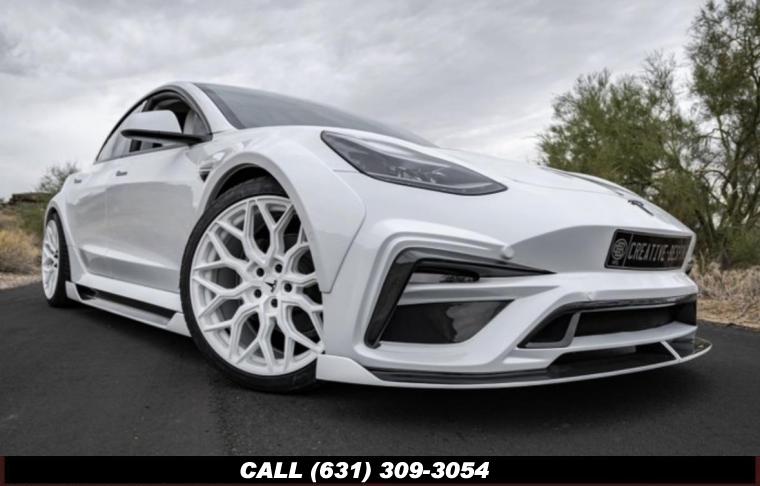 2021 Tesla Model 3 Creative Bespoke Carbon Wide Body Edition. ($30,000 in added equipment)- Bespoke Wide Body Package- One off plaid steering wheel- Custom hyper forged Vossen wheels done in white- H&R lowering sport springs