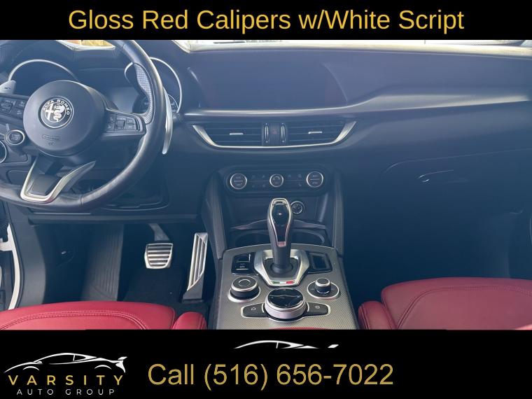 The Price you See, is the Price You Pay!!!, 115V Auxiliary Power Outlet, 4-Wheel Disc Brakes, 8 Speakers, ABS brakes, Active Assist Plus Package, Active Blind Spot Assist, Air Conditioning, Aluminum Interior Trim, Aluminum Steering Column Mounted Paddle Shifters, AM/FM radio: SiriusXM, Auto High-beam Headlights, Auto-dimming Rear-View mirror, Automatic temperature control, Body Color Appearance Kit, Brake assist, Dark Miron V Scudetto Grille, Delay-off headlights, Driver Attention Alert, Dual front impact airbags, Dual front side impact airbags, Emergency communication system: SiriusXM Guardian - included trial, Four wheel independent suspension, Front anti-roll bar, Front Bucket Seats, Front Center Armrest, Front dual zone A/C, Front reading lights, Fully automatic headlights, Garage door transmitter, Genuine wood console insert, Genuine wood dashboard insert, Genuine wood door panel insert, Gloss Black Window Surround Moldings, Gloss Red Calipers w/White Script, harman/kardon Premium Audio, Headlight cleaning, Heated front seats, Heated rear seats, Highway Assist System, Intelligent Speed Assist (ISA), Lane Keep Assist, Leather Dash & Upper Doors, Limited Slip Differential Rear Axle, Memory seat, Navigation System, Panic alarm, Passenger door bin, Power 8-Way Adjustable Driver Seat, Power Adjust 8-Way Front Passenger Seat, Power Adjustable Bolster, Power driver seat, Power moonroof, Power steering, Power windows, Premium Interior & Sound Package, Quick Order Package 22S Veloce, Radio data system, Radio: AM/FM/HD 8.8" w/Navigation, Rain sensing wipers, Rear seat center armrest, Rear window wiper, Red Seats, Remote keyless entry, Security system, Speed-sensing steering, Speed-Sensitive Wipers, Split folding rear seat, Sport Leather Seats, Sport Rear Diffuser, Sport steering wheel, Tachometer, Telescoping steering wheel, Tilt steering wheel, Traffic Jam Assist, Traffic Sign Recognition, Wheels: 19" x 8.0" Sport 5-Hole Aluminum, Wheels: 20" x 8.5" Sport 5-Hole Aluminum. Alfa White 2022 Alfa Romeo Stelvio Veloce AWD 8-Speed Automatic I4 Odometer is 8564 miles below market average! 22/28 City/Highway MPG