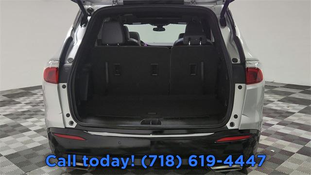 Experience Buick Package, Front Mounting License Plate Bracket Package, Preferred Equipment Group 1SL, 6 Speakers, 6-Speaker Audio System Feature, AM/FM radio: SiriusXM with 360L, Premium audio system: Buick Infotainment System, Radio data system, Radio: Buick Infotainment System AM/FM Stereo, SiriusXM w/360L, Air Conditioning, Automatic temperature control, Front dual zone A/C, Rear air conditioning, Rear window defroster, 6-Way Power Front Passenger Seat Adjuster, 8-Way Power Driver Seat Adjuster, Power driver seat, Power steering, Power windows, Remote keyless entry, Steering wheel mounted audio controls, Four wheel independent suspension, Speed-sensing steering, Traction control, 4-Wheel Disc Brakes, ABS brakes, Dual front impact airbags, Dual front side impact airbags, Emergency communication system: OnStar and Buick connected services capable, Front anti-roll bar, Low tire pressure warning, Occupant sensing airbag, Overhead airbag, Rear anti-roll bar, Front Power Sliding Moonroof, Power Liftgate, Brake assist, Electronic Stability Control, Front & Rear Park Assist, Auto High-beam Headlights, Delay-off headlights, Fully automatic headlights, Panic alarm, Security system, Speed control, Auto-dimming door mirrors, Bumpers: body-color, Heated door mirrors, Power door mirrors, Roof rack: rails only, Spoiler, Turn signal indicator mirrors, Auto-dimming Rear-View mirror, Compass, Driver door bin, Driver vanity mirror, Front reading lights, Garage door transmitter, Heated Steering Wheel, Heated steering wheel, Illuminated entry, Leather steering wheel, Outside temperature display, Overhead console, Passenger vanity mirror, Rear reading lights, Tachometer, Telescoping steering wheel, Tilt steering wheel, Trip computer, Voltmeter, Wireless Apple CarPlay/Wireless Android Auto, 3rd row seats: split-bench, 7-Passenger Seating, Front Bucket Seats, Front Center Armrest, Heated Driver & Front Passenger Seats, Heated front seats, Perforated Leather-Appointed Seat Trim, Power Driver Lumbar Control Seat Adjuster, Power Passenger Lumbar Control Seat Adjuster, Power passenger seat, Passenger door bin, 18" Aluminum Wheels, 20" Polished Aluminum Wheels, Alloy wheels, Rear window wiper, Variably intermittent wipers, 3.49 Axle Ratio