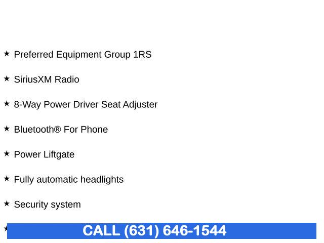 • Floor Liner Package (LPO), Preferred Equipment Group 1RS, 6 Speaker Audio System Feature, 6 Speakers, AM/FM radio: SiriusXM, Premium audio system: Chevrolet Infotainment 3, Radio data system, Radio: Chevrolet Infotainment 3 System w/AM/FM, SiriusXM Radio, Air Conditioning, Automatic temperature control, Front dual zone A/C, Rear window defroster, 8-Way Power Driver Seat Adjuster, Bluetooth® For Phone, Power driver seat, Power steering, Power windows, Remote keyless entry, Steering wheel mounted audio controls, Four wheel independent suspension, Speed-sensing steering, Traction control, 4-Wheel Disc Brakes, ABS brakes, Dual front impact airbags, Dual front side impact airbags, Emergency communication system: OnStar and Chevrolet connected services capable, Front anti-roll bar, Low tire pressure warning, Occupant sensing airbag, Overhead airbag, Rear anti-roll bar, Power Liftgate, Brake assist, Electronic Stability Control, Auto High-beam Headlights, Delay-off headlights, Fully automatic headlights, Panic alarm, Security system, Speed control, Bumpers: body-color, Heated door mirrors, Power door mirrors, Roof rack: rails only, Spoiler, 2 Rear USB Charging-Only Ports, 2 USB Ports & Auxiliary Input Jack, All-Weather Floor Liners (LPO), Compass, Driver door bin, Driver vanity mirror, Front reading lights, Illuminated entry, Integrated Cargo Liner (LPO), Leather steering wheel, Outside temperature display, Overhead console, Passenger vanity mirror, Premium Cloth Seat Trim, Rear reading lights, Rear seat center armrest, Tachometer, Telescoping steering wheel, Tilt steering wheel, Trip computer, Wireless Apple CarPlay/Wireless Android Auto, 2-Way Power Driver Lumbar Control Seat Adjuster, Front Bucket Seats, Front Center Armrest, Front Passenger 4-Way Manual Seat Adjuster, Heated Driver & Front Passenger Seats, Heated front seats, Not Equipped w/Driver & Fr Pass Heated Seats, Split folding rear seat, Passenger door bin, 19" Aluminum Wheels, Alloy wheels, Set of 4 Wheel Locks (LPO), Rear window wiper, Variably intermittent wipers, 3.87 Final Drive Axle Ratio
