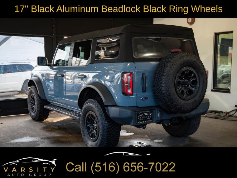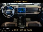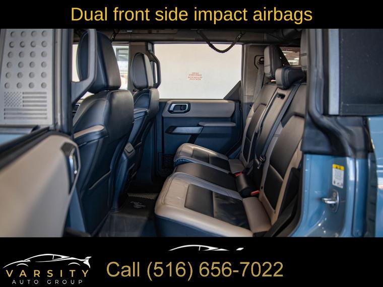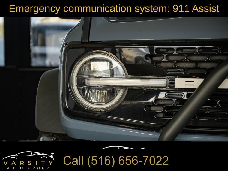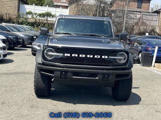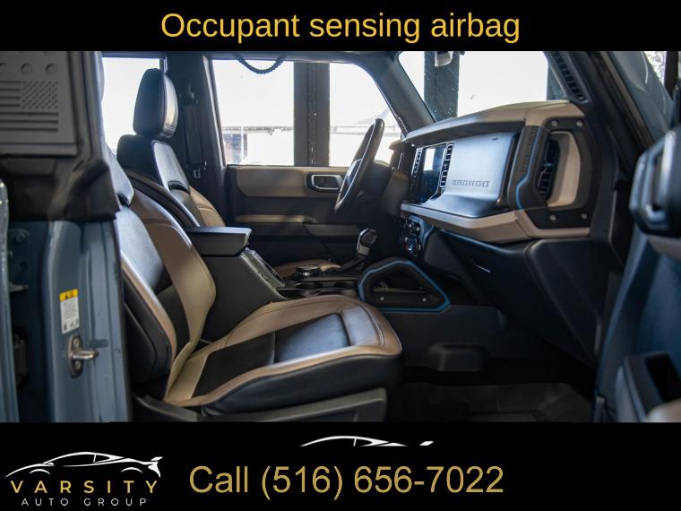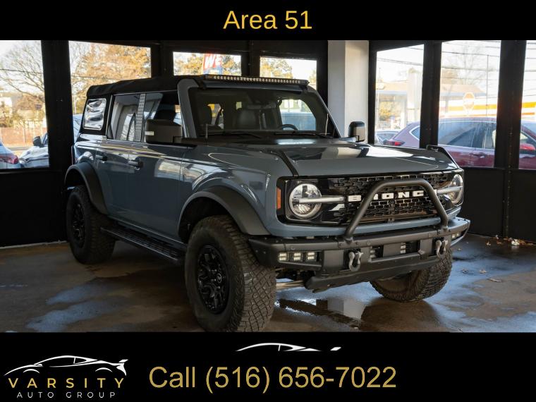 2022 Ford Bronco Wildtrak 4-Door, Area 51, Medium Sandstone w/Black Onyx w/Heated Leather-Trimmed/Vinyl Bucket Seats, Equipment Group 354A Lux Package, 17" Black Aluminum Beadlock Black Ring Wheels, 35" tires, Clean CARFAX, 12" LCD Capacitive Touchscreen w/Swipe Capability, 2 Smart Charging USB Ports In Dashboard, 360-Degree Camera, 4-Wheel Disc Brakes, 6 Speakers, ABS brakes, Adaptive Cruise Control, Additional Sound Deadening, Air Conditioning, Alloy wheels, AM/FM radio: SiriusXM with 360L, AM/FM Stereo, Auto High-beam Headlights, Brake assist, Brush Guard, Compass, Connected Built-In Navigation, Delay-off headlights, Driver door bin, Driver vanity mirror, Dual front impact airbags, Dual front side impact airbags, Electronic Stability Control, Emergency communication system: 911 Assist, Equipment Group 354A Lux Package, Evasive Steering Assist, Exterior Parking Camera Rear, Ford Performance Heavy-Duty Modular Front Bumper, Front & Rear Floor Liners, Front anti-roll bar, Front Bucket Seats, Front Center Armrest, Front Parking Sensors, Front reading lights, Front Steel Bash Plates, Front wheel independent suspension, Fully automatic headlights, Heated door mirrors, Heated Steering Wheel, Illuminated entry, Information on Demand Panel, Integrated roll-over protection, Keyless Entry Keypad, Low tire pressure warning, Occupant sensing airbag, Outside temperature display, Overhead airbag, Overhead console, Panic alarm, Passenger door bin, Passenger vanity mirror, Power door mirrors, Power steering, Power windows, Radio data system, Radio: B&O Sound System by Bang & Olufsen, Rear-View Camera, Remote keyless entry, Security system, Sideview Mirrors, SiriusXM Radio w/360L, Speed control, Split folding rear seat, Steering wheel mounted audio controls, SYNC 4, Tachometer, Telescoping steering wheel, Tilt steering wheel, Traction control, Trip computer, Universal Garage Door Opener, Variably intermittent wipers, Wheels: 17" Black Gloss-Painted Steel, Wireless Charging Pad. Area 51 2022 Ford Bronco Wildtrak 4-Door 4WD 10-Speed Automatic 2.7L EcoBoost V6