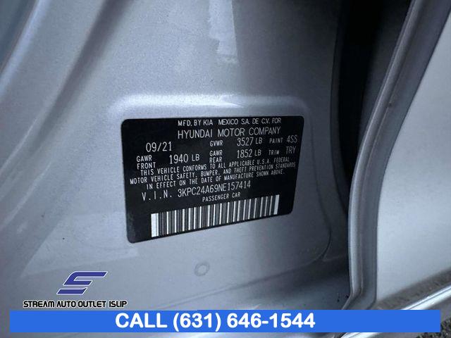 For more information on this 2022 Hyundai Accent, please call Stream Auto Outlet Islip at (631) 646-1544 or with the contact form on this page. This vehicle's vin number is 3KPC24A69NE157414 and is recorded as being in stock at Stream Auto Outlet Islip at 2232 Sunrise Hwy in Islip. See all cars from this dealership.