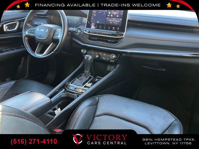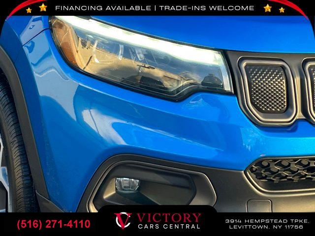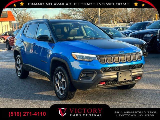 All pricing and details are believed to be accurate, but we do not warrant or guarantee such accuracy. The prices shown above may vary from region to region, as will incentives, and are subject to change. All cars are sold cosmetically As-Is. Vehicle information is based on standard equipment and may vary from vehicle to vehicle. Call or email for complete vehicle specific information. Price Does not include tax, title, license, destination charges, finance charges, or any reconditioning fees. Our special Internet pricing cannot be extended without a printed copy of the online pricing. The in-store price may exceed our special online pricing. Sorry but we cannot extend special pricing without a printed copy of the on-line pricing. To take advantage of our special Internet discounts, please print this page and present it to your salesperson at the BEGINNING of the transaction. Special Internet pricing posted on this ad/coupon/promotion is only available to customers who reference such pricing & present the ad at time of sale otherwise our store standard list price applies. Please be advised this ad is a Special Internet only ad. Prices can be modified and adjusted weekly, daily and sometimes hourly due to inquiries, bidding and website traffic on any Vehicles. All displayed inventory is subject to prior sale and all prices expire at midnight on the date displayed. Every reasonable effort has been made to ensure the accuracy of the information contained on this site, however absolute accuracy cannot be guaranteed. Advertised special excludes state tax, title, license, registration, NY state inspection, NYS tire recycling fee, finance charges, and dealer fees if applicable. Please verify any information in question with the dealership sales manager. This is easily done by calling us at (516) 271-4110 or by visiting us at the dealership. **With approved credit. Laser Blue Pearlcoat 2022 Jeep Compass Trailhawk 4WD 9-Speed 948TE Automatic 2.4L I4 4WD.