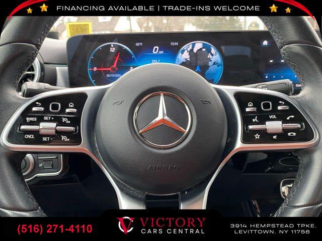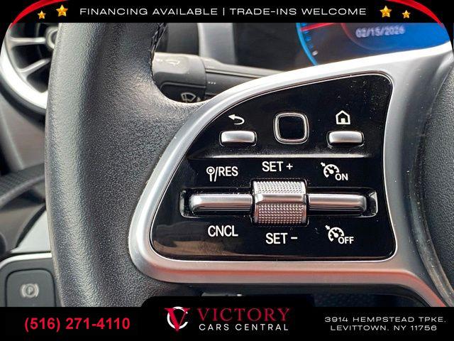8 Speakers, AM/FM radio, HD Radio, Premium audio system: MBUX, Radio data system, Radio: MBUX Multimedia System, Air Conditioning, Automatic temperature control, Front dual zone A/C, Rear window defroster, Memory seat, Power driver seat, Power Driver Seat & Steering Column w/Memory, Power Passenger Seat w/Memory, Power steering, Power windows, Remote keyless entry, Steering wheel mounted audio controls, Four wheel independent suspension, Speed-sensing steering, Traction control, 4-Wheel Disc Brakes, ABS brakes, Child-Seat-Sensing Airbag, Dual front impact airbags, Dual front side impact airbags, Emergency communication system: Mercedes-Benz Emergency Call Service, Front anti-roll bar, Knee airbag, Low tire pressure warning, Occupant sensing airbag, Overhead airbag, Rear anti-roll bar, Power moonroof: Panorama, Smartphone Integration, Brake assist, Electronic Stability Control, Exterior Parking Camera Rear, Delay-off headlights, Fully automatic headlights, Panic alarm, Security system, Speed control, Bumpers: body-color, Heated door mirrors, Power door mirrors, Turn signal indicator mirrors, Android Auto®, Apple CarPlay®, Apple CarPlay®/Android Auto®, Driver door bin, Driver vanity mirror, Front reading lights, HERMES Communications Module LTE, Illuminated entry, Outside temperature display, Overhead console, Passenger vanity mirror, Power Front Bucket Seats w/Memory, Rear reading lights, Rear seat center armrest, Tachometer, Telescoping steering wheel, Tilt steering wheel, Trip computer, 4-Way Lumbar Support, Front Bucket Seats, Front Center Armrest, MB-Tex Upholstery, Power passenger seat, Split folding rear seat, Passenger door bin, Alloy wheels, Extended Mobility Tires, Wheels: 17" 10-Spoke, Rain sensing wipers, Variably intermittent wipers