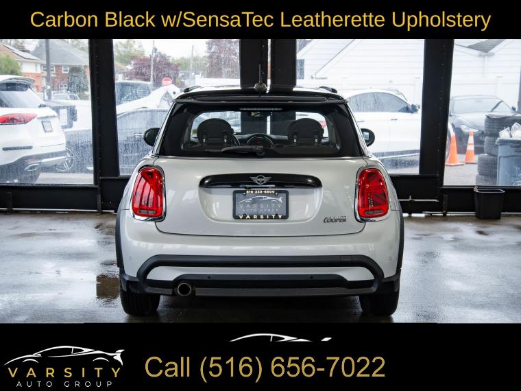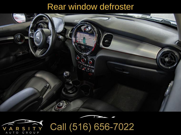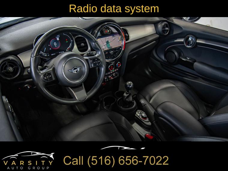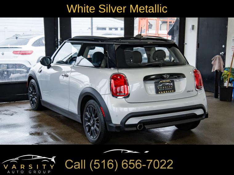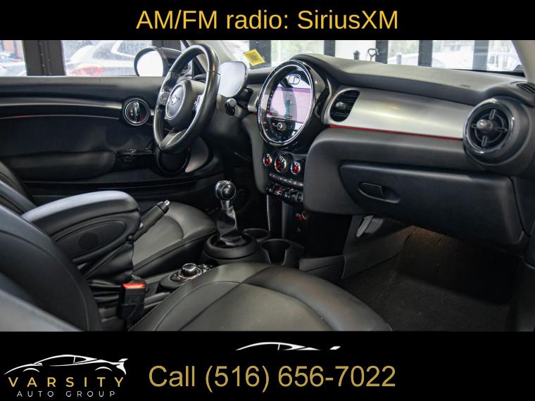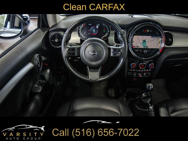 2022 MINI Cooper Signature, 6-Speed Manual, White Silver Metallic, Carbon Black w/SensaTec Leatherette Upholstery, Signature Trim, Storage Package, Clean CARFAX, 4-Wheel Disc Brakes, 6 Speakers, ABS brakes, Advanced Real-Time Traffic Information, Air Conditioning, Alloy wheels, AM/FM radio: SiriusXM, AM/FM Stereo, Ambient Lighting, Apple CarPlay Compatibility, Auto High-beam Headlights, Black Bonnet Stripes, Black Roof & Mirror Caps, Brake assist, Bumpers: body-color, Comfort Access Keyless Entry, ConnectedDrive Services, Delay-off headlights, Driver door bin, Driver vanity mirror, Dual front impact airbags, Dual front side impact airbags, Dual Zone Auto Climate Control, Dynamic Digital Instrument Cluster, Electronic Stability Control, Emergency communication system, Enhanced USB & Bluetooth, Exterior Parking Camera Rear, Four wheel independent suspension, Front anti-roll bar, Front Bucket Seats, Front Center Armrest w/Storage, Front fog lights, Front reading lights, Fully automatic headlights, Heated door mirrors, Heated Front Seats, Illuminated entry, Knee airbag, Leather steering wheel, Low tire pressure warning, Media Display, MINI Assist eCall, MINI Connected, MINI Navigation, MINI TeleServices, Occupant sensing airbag, Outside temperature display, Overhead airbag, Overhead console, Panoramic Moonroof, Passenger door bin, Passenger Seat Height Adjustment, Passenger vanity mirror, Power door mirrors, Power steering, Power windows, Radio Control US, Radio data system, Rain sensing wipers, Rear anti-roll bar, Rear fog lights, Rear window defroster, Rear window wiper, Remote keyless entry, Remote Services, Roof Rails, SensaTec Leatherette Upholstery, Signature Trim, SiriusXM Satellite Radio, Speed control, Speed-sensing steering, Speed-Sensitive Wipers, Split folding rear seat, Spoiler, Sport steering wheel, Standard Seats, Steering wheel mounted audio controls, Storage Package, Tachometer, Telescoping steering wheel, Tilt steering wheel, Touch-Screen Navigation, Touchscreen Media Display, Traction control, Trip computer, Variably intermittent wipers, Wheels: 16" x 6.5" Victory Spoke Black Alloy. White Silver Metallic 2022 MINI Cooper Signature FWD 6-Speed Manual 1.5L 12V TwinPower Turbo 27/37 City/Highway MPG