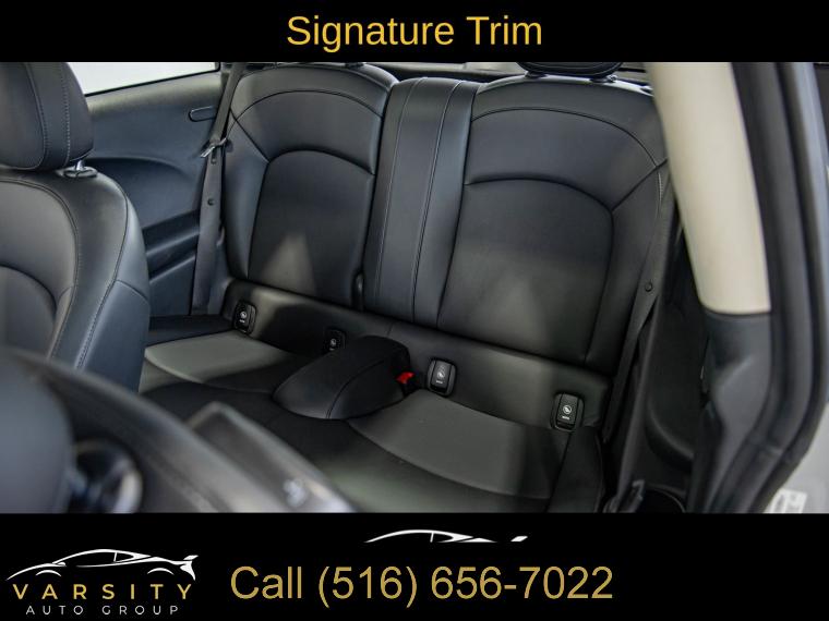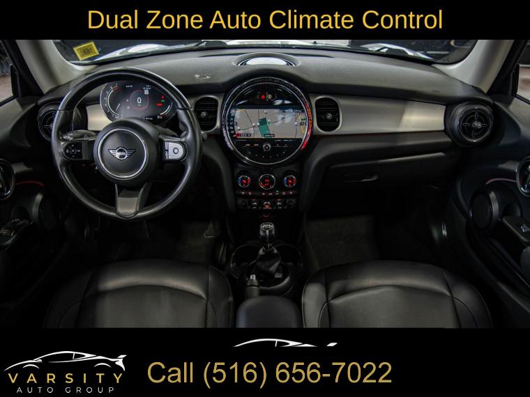Touch-Screen Navigation, Signature Trim, Storage Package, Touchscreen Media Display, 6 Speakers, AM/FM radio: SiriusXM, AM/FM Stereo, Radio Control US, Radio data system, SiriusXM Satellite Radio, Air Conditioning, Dual Zone Auto Climate Control, Rear window defroster, Comfort Access Keyless Entry, Power steering, Power windows, Remote keyless entry, Steering wheel mounted audio controls, Four wheel independent suspension, Speed-sensing steering, Traction control, 4-Wheel Disc Brakes, ABS brakes, Dual front impact airbags, Dual front side impact airbags, Emergency communication system, Front anti-roll bar, Knee airbag, Low tire pressure warning, Occupant sensing airbag, Overhead airbag, Rear anti-roll bar, Remote Services, Panoramic Moonroof, Brake assist, Electronic Stability Control, Exterior Parking Camera Rear, Auto High-beam Headlights, Delay-off headlights, Front fog lights, Fully automatic headlights, Rear fog lights, Speed control, Black Bonnet Stripes, Black Roof & Mirror Caps, Bumpers: body-color, Heated door mirrors, Power door mirrors, Spoiler, Advanced Real-Time Traffic Information, Ambient Lighting, Apple CarPlay Compatibility, ConnectedDrive Services, Driver door bin, Driver vanity mirror, Dynamic Digital Instrument Cluster, Enhanced USB & Bluetooth, Front reading lights, Illuminated entry, Leather steering wheel, Media Display, MINI Assist eCall, MINI Connected, MINI Navigation, MINI TeleServices, Outside temperature display, Overhead console, Passenger vanity mirror, Sport steering wheel, Standard Seats, Tachometer, Telescoping steering wheel, Tilt steering wheel, Trip computer, Front Bucket Seats, Heated Front Seats, Passenger Seat Height Adjustment, SensaTec Leatherette Upholstery, Split folding rear seat, Front Center Armrest w/Storage, Passenger door bin, Roof Rails, Alloy wheels, Wheels: 16" x 6.5" Victory Spoke Black Alloy, Rain sensing wipers, Rear window wiper, Speed-Sensitive Wipers, Variably intermittent wipers, 2022 MINI Cooper Signature, 6-Speed Manual, White Silver Metallic, Carbon Black w/SensaTec Leatherette Upholstery, Clean CARFAX