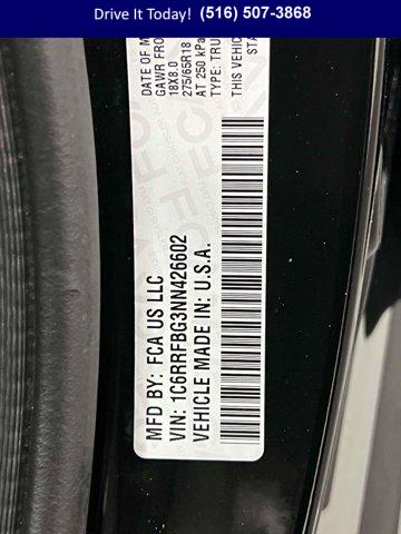 For more information on this 2022 RAM 1500, please call Westbury Jeep Chrysler Dodge at (516) 507-3868 or with the contact form on this page. This vehicle's vin number is 1C6RRFBG3NN426602 and is recorded as being in stock at Westbury Jeep Chrysler Dodge at 100 Jericho Tpke in Jericho. See all cars from this dealership.