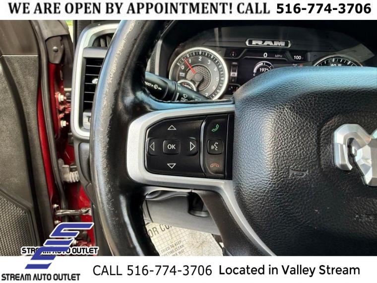 Big Horn Level 1 Equipment Group, Quick Order Package 23Z Big Horn, 6 Speakers, AM/FM radio, Integrated Center Stack Radio, Radio data system, Radio: Uconnect 3 w/5" Display, Radio: Uconnect 5 W w/8.4" Display, SiriusXM Radio Service, SiriusXM Satellite Radio, Air Conditioning, Rear Window Defroster, Power 8-Way Driver Seat, Power steering, Power windows, Rear 60/40 Folding Seat, Rear Power Sliding Window, Remote keyless entry, Steering wheel mounted audio controls, Universal Garage Door Opener, Traction control, 4-Wheel Disc Brakes, ABS brakes, Dual front impact airbags, Dual front side impact airbags, Emergency communication system: SiriusXM Guardian, Front anti-roll bar, Front wheel independent suspension, Low tire pressure warning, Occupant sensing airbag, Overhead airbag, Rear anti-roll bar, Brake assist, Electronic Stability Control, ParkView Rear Back-Up Camera, Delay-off headlights, Front fog lights, Fully automatic headlights, Panic alarm, Speed control, 48V Belt Starter Generator, Auto-Dimming Exterior Driver Mirror, Big Horn Badge, Black Exterior Mirrors, Black Premium Power Mirrors, Bumpers: chrome, Convex Wide-Angle Mirror Insert, Exterior Mirrors Courtesy Lamps, Exterior Mirrors w/Heating Element, Exterior Mirrors w/Supplemental Signals, For More Info, Call 800-643-2112, Front License Plate Bracket, Heated door mirrors, Power door mirrors, Power-Folding Mirrors, Rear step bumper, USB Host Flip, 4G LTE Wi-Fi Hot Spot, 8.4" Touchscreen Display, Apple CarPlay, Auto-Dimming Rear-View Mirror, Bluetooth Handsfree Phone & Audio, Cluster 7.0" TFT Color Display, Compass, Connectivity - US/Canada, Driver door bin, For Details, Visit DriveUconnect.com, Front reading lights, Global Telematics Box Module (TBM), Glove Box Lamp, Google Android Auto, GPS Antenna Input, Illuminated entry, Integrated Voice Command w/Bluetooth, Leather steering wheel, Outside temperature display, Overhead console, Passenger vanity mirror, Power Adjustable Pedals, Rear Dome w/On/Off Switch Lamp, Rear seat center armrest, Sun Visors w/Illuminated Vanity Mirrors, Tachometer, Telescoping steering wheel, Tilt steering wheel, Trip computer, Voltmeter, 3 Rear Seat Head Restraints, 4 Way Front Headrests, Cloth Bench Seat, Manual Adjust 4-Way Front Passenger Seat, Power 2-Way Driver Lumbar Adjust, Split folding rear seat, Front Center Armrest w/Storage, Front Seat Back Map Pockets, Passenger door bin, Class IV Receiver Hitch, Alloy wheels, Wheels: 18" x 8" Cast-Aluminum Painted, Wheels: 20" x 9" Aluminum Chrome Clad, Variably intermittent wipers, 3.21 Rear Axle Ratio, * NYS INSPECTION INCLUDED *, * FULL INTERIOR / EXTERIOR DETAIL *, * BLUETOOTH *, * LIMITED NYS LEMON LAW WARRANTY INCLUDED *, *FRESH OIL CHANGE *, * 150 MULTI POINT INSPECTION *