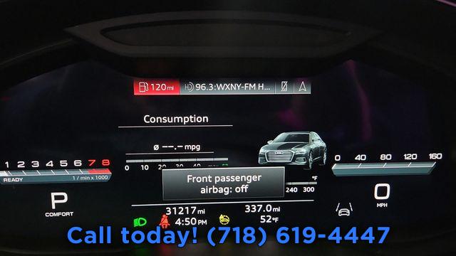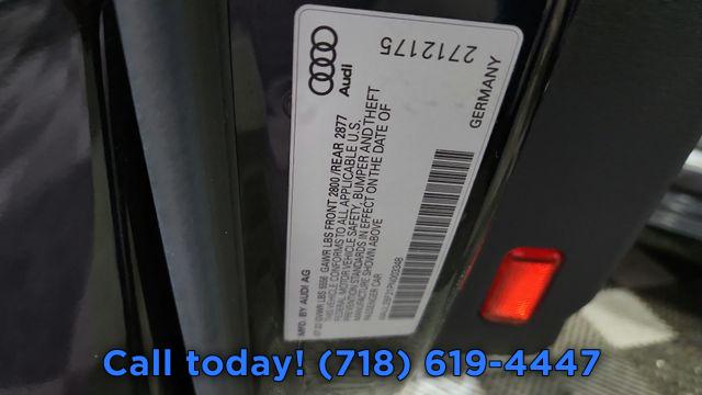 Navigation system: MMI Navigation plus, 10 Speakers, AM/FM radio: SiriusXM w/ 360L, Radio data system, Radio: Audi MMI Nav Plus w/MMI Touch Response, Air Conditioning, Automatic temperature control, Front dual zone A/C, Rear air conditioning, Rear window defroster, Memory seat, Power driver seat, Power steering, Power windows, Remote keyless entry, Steering wheel memory, Steering wheel mounted audio controls, Four wheel independent suspension, Speed-sensing steering, Traction control, 4-Wheel Disc Brakes, ABS brakes, Dual front impact airbags, Dual front side impact airbags, Emergency communication system: Audi connect CARE (limited time subscription), Front anti-roll bar, Knee airbag, Low tire pressure warning, Occupant sensing airbag, Overhead airbag, Rear anti-roll bar, Rear side impact airbag, Power moonroof, Brake assist, Electronic Stability Control, Exterior Parking Camera Rear, Auto High-beam Headlights, Delay-off headlights, Front fog lights, Panic alarm, Security system, Speed control, Auto-dimming door mirrors, Bumpers: body-color, Heated door mirrors, Power door mirrors, Turn signal indicator mirrors, Auto tilt-away steering wheel, Auto-dimming Rear-View mirror, Compass, Driver door bin, Driver vanity mirror, Front reading lights, Garage door transmitter: HomeLink, Genuine wood console insert, Genuine wood dashboard insert, Genuine wood door panel insert, Illuminated entry, Leather Shift Knob, Leather steering wheel, Outside temperature display, Overhead console, Passenger vanity mirror, Rear reading lights, Rear seat center armrest, Tachometer, Telescoping steering wheel, Tilt steering wheel, Trip computer, Front Bucket Seats, Front Center Armrest, Heated Front Seats, Heated front seats, Leather Seating Surfaces, Power passenger seat, Split folding rear seat, Passenger door bin, Alloy wheels, Wheels: 19" Bi-Color Finish 5-Double-Spoke-Design, Rain sensing wipers, Speed-Sensitive Wipers, Variably intermittent wipers