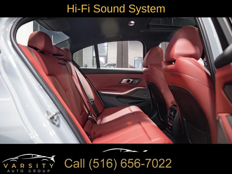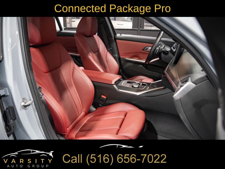 Navigation System, Connected Package Pro, Driving Assistance Package, Dynamic Handling Package, M Sport Package, M Sport Package (337), M Sport Package Pro, Parking Assistance Package, Premium Package, Shadowline Package, 10 Speakers, AM/FM radio: SiriusXM, harman/kardon Surround Sound System, Hi-Fi Sound System, Radio data system, Radio: AM/FM Audio System, SiriusXM Satellite Radio w/1 Year Subscription, Air Conditioning, Automatic temperature control, Front dual zone A/C, Rear air conditioning, Rear window defroster, Comfort Access Keyless Entry, Memory seat, Power driver seat, Power steering, Power windows, Remote Engine Start, Remote keyless entry, Steering wheel mounted audio controls, Adaptive M Suspension, Four wheel independent suspension, Speed-sensing steering, Traction control, 4-Wheel Disc Brakes, ABS brakes, Dual front impact airbags, Dual front side impact airbags, Emergency communication system: BMW Assist eCall, Front anti-roll bar, Increased Top Speed Limiter, Knee airbag, Low tire pressure warning, M Sport Brakes w/Blue Calipers, M Sport Brakes w/Red Calipers, Occupant sensing airbag, Overhead airbag, Rear anti-roll bar, Variable Sport Steering, Power moonroof, Active Blind Spot Detection, Brake assist, Electronic Stability Control, Lane Departure Warning System, Exterior Parking Camera Rear, Rear-View Camera, Auto High-beam Headlights, Delay-off headlights, Fully automatic headlights, Panic alarm, Security system, Speed control, Aerodynamic Kit, Auto-dimming door mirrors, Black Mirror Caps, Bumpers: body-color, Extended Shadowline Trim, Heated door mirrors, LED Lights w/Cornering Lights, M Shadowline Lights, M Sport Suspension, Power door mirrors, Rear Spoiler, Turn signal indicator mirrors, Without Lines Designation Outside, Active Driving Assistant, Active Park Distance Control, Apple CarPlay & Android Auto Compatibility, Apple CarPlay Compatibility, Auto-dimming Rear-View mirror, BMW Assist eCall, BMW Curved Display, BMW Curved Display w/HUD, BMW TeleServices, Compass, ConnectedDrive Services, Driver door bin, Driver vanity mirror, Enhanced USB & Bluetooth Plus Smartphone Integration, Front reading lights, Garage door transmitter, Genuine wood console insert, Genuine wood dashboard insert, Heated Steering Wheel, Illuminated entry, Leather Shift Knob, Leather steering wheel, M Steering Wheel, Outside temperature display, Park Distance Control, Parking Assistant Plus, Passenger vanity mirror, Rear reading lights, Rear seat center armrest, Sport steering wheel, Surround View w/3D View, Tachometer, Telescoping steering wheel, Tilt steering wheel, Trip computer, Widescreen Display, Driver Lumbar Support, Front Bucket Seats, Front Center Armrest, Heated Front Seats, Perforated Sensatec Upholstery, Power Front Seats, Power passenger seat, Split folding rear seat, Sport Seats, Passenger door bin, Alloy wheels, Wheels: 18" x 7.5" Lt/Aly Double-Spoke (Style 796), Wheels: 19" x 8.0" Fr & 19" x 8.5" Rr (Style 791M), Wheels: 19" x 8" M Double-Spoke Bi-Color Jet Black, Wheels: 19" x 8" M Double-Spoke Jet Black, Rain sensing wipers, Speed-Sensitive Wipers, Variably intermittent wipers, 2023 BMW 3 Series 330i xDrive M Sport, Brooklyn Gray Metallic, Tacora Red w/Perforated Sensatec Upholstery, One Owner, Clean CARFAX