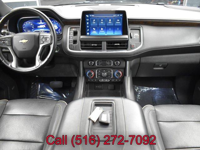 DARK ASH METALLIC, AUDIO SYSTEM CHEVROLET INFOTAINMENT 3 PREMIUM SYSTEM WITH GOOGLE BUILT-IN 10.2 diagonal HD color touchscreen includes multi-touch display AM/FM stereo Bluetooth streaming audio for music and most phones; featuring wireless Android Auto and Apple CarPlay capability for compatible phones advanced voice recognition in-vehicle apps personalized profiles for infotainment and vehicle settings.) (STD), REAR AXLE 3.23 RATIO, TIRES 275/60R20SL ALL-SEASON BLACKWALL (STD), JET BLACK PERFORATED LEATHER SEATING SURFACES 1ST AND 2ND ROW, TRANSMISSION 10-SPEED AUTOMATIC electronically controlled with overdrive includes Traction Select System including tow/haul (Standard with (L84) 5.3L EcoTec3 V8 engine or (L87) 6.2L EcoTec3 V8 engine only.) (STD), WHEELS 20 X 9 (50.8 CM X 22.9 CM) POLISHED ALUMINUM (STD), GVWR 7500 LBS. (3402 KG) (STD), SEATS FRONT BUCKET (STD), NOT EQUIPPED WITH 4-WAY DRIVER AND FRONT PASSENGER POWER LUMBAR see dealer for details (Beginning with start of production through December 31 2022 vehicles will be forced to include (R6S) Not Equipped with 4-Way Driver and Front Passenger Power Lumbar which removes 4-way driver and front passenger power lumbar. Vehicles will be equipped with 2-way driver and front passenger power lumbar. See the window label for the features on a specific vehicle.), PREMIER PREFERRED EQUIPMENT GROUP includes standard equipment, ENGINE 5.3L ECOTEC3 V8 with Dynamic Fuel Management Direct Injection and Variable Valve Timing includes aluminum block construction (355 hp [265 kW] @ 5600 rpm 383 lb-ft of torque [518 Nm] @ 4100 rpm) (STD), Active Suspension, Immobilizer, Keyless Start, Locking/Limited Slip Differential, Rear Wheel Drive, Tow Hitch, Power Steering, ABS, 4-Wheel Disc Brakes, Aluminum Wheels, Tires - Front All-Season, Tires - Rear All-Season, Conventional Spare Tire, Conventional Spare Tire, Luggage Rack, Running Boards/Side Steps, Automatic Highbeams, Heated Mirrors, Power Mirror(s), Integrated Turn Signal Mirrors, Power Folding Mirrors, Privacy Glass, Intermittent Wipers, Variable Speed Intermittent Wipers, Rain Sensing Wipers, Intermittent Wipers, Remote Trunk Release, Power Liftgate, AM/FM Stereo, MP3 Capability, Bluetooth Connection, Auxiliary Audio Input, Smart Device Integration, Premium Sound System, MP3 Capability, Bluetooth Connection, Auxiliary Audio Input, Navigation System, Satellite Radio, Telematics, Requires Subscription, Bluetooth Connection, Bluetooth Connection, Smart Device Integration, WiFi Hotspot, Bucket Seats, Leather Seats, Heated Front Seat(s), Heated Front Seat(s), Cooled Front Seat(s), Heated Rear Seat(s), Bucket Seats, Rear Bucket Seats, 3rd Row Seat, Floor Mats, Adjustable Steering Wheel, Heated Steering Wheel, Cruise Control, Steering Wheel Audio Controls, Front Collision Warning, Power Door Locks, Keyless Entry, Power Door Locks, Remote Engine Start, Cruise Control, Universal Garage Door Opener, Security System, MP3 Capability, Auxiliary Audio Input, Power Windows, Power Windows, Power Windows, Mirror Memory, Seat Memory, Climate Control, Multi-Zone A/C, A/C, Rear A/C, A/C, Rear A/C, Rear Defrost, Auto-Dimming Rearview Mirror, Driver Vanity Mirror, Passenger Vanity Mirror, Driver Illuminated Vanity Mirror, Passenger Illuminated Visor Mirror, Front Reading Lamps, Rear Reading Lamps, Front Collision Mitigation, Front Collision Warning, Traction Control, Stability Control, Brake Assist, Daytime Running Lights, Driver Restriction Features, Driver Air Bag, Passenger Air Bag, Front Side Air Bag, Front Head Air Bag, Rear Head Air Bag, Passenger Air Bag Sensor, Telematics, Requires Subscription, Lane Departure Warning, Lane Keeping Assist, Front Collision Mitigation, Front Collision Warning, Automatic Highbeams, Rear Parking Aid, Back-Up Camera, Cross-Traffic Alert, Front Collision Mitigation, Blind Spot Monitor, Lane Departure Warning, Lane Keeping Assist, Front Collision Warning, Child Safety Locks, Tire Pressure Monitor
