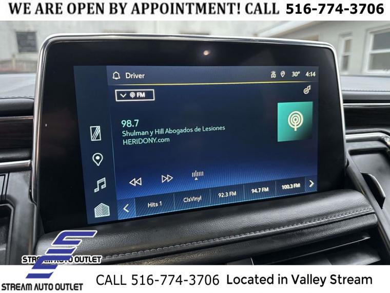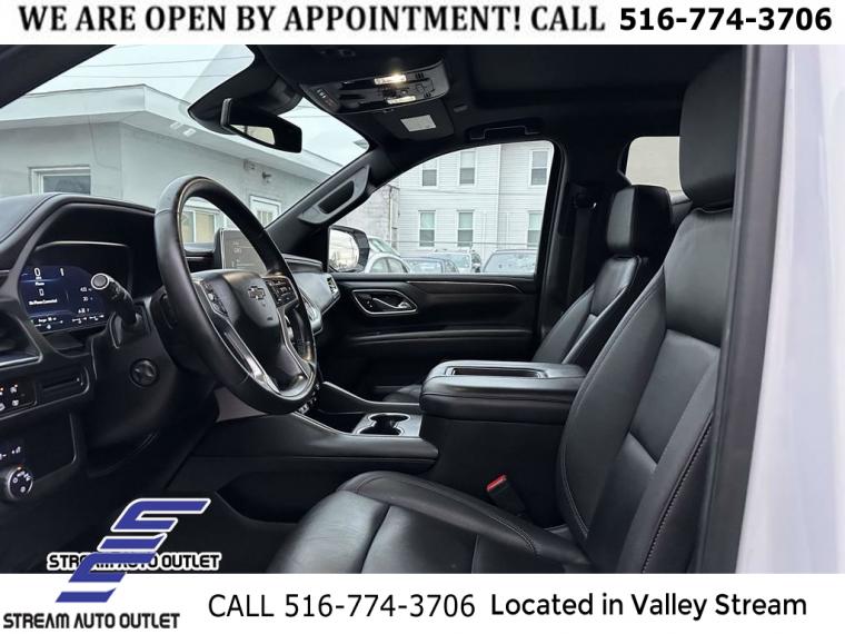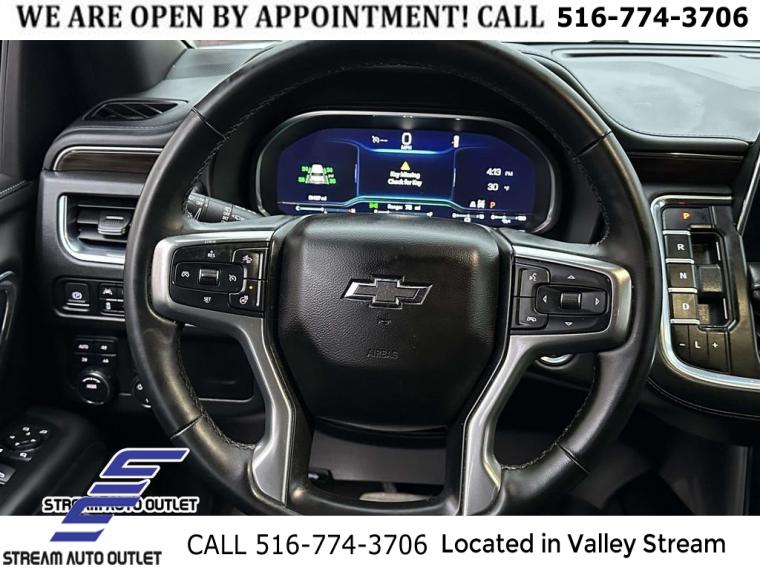 Navigation System, Driver Alert Package, License Plate Front Mounting Package, Luxury Package, Preferred Equipment Group 2Z7, 9 Speakers, AM/FM radio: SiriusXM with 360L, Bose 9-Speaker Stereo Audio System Feature, Premium audio system: Chevrolet Infotainment 3 Premium, Radio: Chevrolet Infotainment 3 Premium System, SiriusXM Radio w/360L, Air Conditioning, Automatic temperature control, Front dual zone A/C, Rear air conditioning, Rear window defroster, Enhanced Driver Information Center, Hands-Free Rear Power Programmable Liftgate, Memory seat, Memory Settings, Power driver seat, Power steering, Power windows, Remote keyless entry, Remote Start, Steering wheel mounted audio controls, Universal Home Remote, Four wheel independent suspension, Premium Smooth Ride Suspension, Speed-sensing steering, Traction control, Wrapped Steering Wheel, 4-Wheel Disc Brakes, ABS brakes, Dual front impact airbags, Dual front side impact airbags, Emergency communication system: OnStar and Chevrolet connected services capable, Front anti-roll bar, Low tire pressure warning, Occupant sensing airbag, Overhead airbag, Rear anti-roll bar, Dual-Pane Power Panoramic Sunroof, Power Liftgate, Brake assist, Electronic Stability Control, Hill Descent Control, Auto High-beam Headlights, Delay-off headlights, Fully automatic headlights, LED Daytime Running Lamps, Driver & Front Outboard Passenger Airbags, Panic alarm, Security system, Speed control, 2-Speed Active Electronic AutoTrac Transfer Case, Black Tubular Assist Steps, Bright Front & Rear Door Sill Plates, Bumpers: body-color, Front High-Approach Angle Fascia, Heated door mirrors, Illuminated Mirror Chevrolet Emblem (LPO), Outside Heated Power-Adjustable Mirrors, Power door mirrors, Roof rack: rails only, Spoiler, 1st & 2nd Row Color-Keyed Carpeted Floor Mats, Apple CarPlay/Android Auto, Auto-Dimming Inside Rear-View Mirror, Auto-dimming Rear-View mirror, Color-Keyed Carpeting Floor Covering, Compass, Driver door bin, Driver vanity mirror, Front reading lights, Garage door transmitter, HD Surround Vision, Heated Steering Wheel, Illuminated entry, Infotainment Display, Lane Change Alert w/Side Blind Zone Alert, Memory Settings for Driver, Outside temperature display, Overhead console, Passenger vanity mirror, Power Tilt & Telescopic Steering Column, Rear Cross Traffic Alert, Rear Pedestrian Alert, Rear reading lights, Rear seat center armrest, Rear Seat Media System, Tachometer, Telescoping steering wheel, Tilt steering wheel, Trip computer, Voltmeter, Wireless Charging, 10-Way Power Driver & Passenger Seat Adjusters, 2nd Row Pwr Release 60/40 Split-Folding Bench Seat, 3rd Row 60/40 Power-Folding Split-Bench Seat, 3rd row seats: split-bench, Floor Console w/Storage Area, Front Bucket Seats, Front Center Armrest, Front High-Back Reclining Bucket Seats, Heated 2nd Row Outboard Seats, Heated Driver & Front Passenger Seats, Heated front seats, Leather-Appointed Seat Trim, Power passenger seat, Power Release 2nd Row Bucket Seats, Split folding rear seat, Passenger door bin, Red Horizontal-Mounted Recovery Hooks, Alloy wheels, Wheels: 20" x 9" Machined Aluminum, Rain sensing wipers, Rear window wiper, Variably intermittent wipers, 3.23 Rear Axle Ratio, * NYS INSPECTION INCLUDED *, * FULL INTERIOR / EXTERIOR DETAIL *, * BLUETOOTH *, * LIMITED NYS LEMON LAW WARRANTY INCLUDED *, *FRESH OIL CHANGE *, * 150 MULTI POINT INSPECTION *
