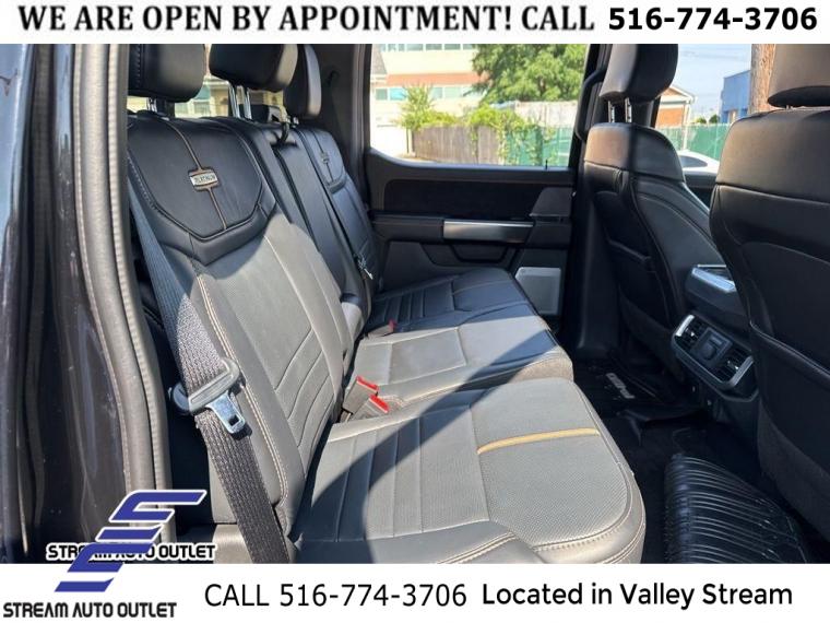 Navigation System, Bed Utility Package, Equipment Group 701A High, Ford BlueCruise 1.0, 8 Speakers, AM/FM radio: SiriusXM with 360L, Radio data system, Radio: B&O Sound System by Bang & Olufsen, Radio: B&O Unleashed Sound System by Bang & Olufsen, Air Conditioning, Automatic temperature control, Front dual zone A/C, Rear window defroster, Memory seat, Pedal memory, Power driver seat, Power steering, Power windows, Pro Power Onboard - 2KW, Remote keyless entry, Steering wheel memory, Steering wheel mounted audio controls, Speed-sensing steering, Traction control, 4-Wheel Disc Brakes, ABS brakes, Dual front impact airbags, Dual front side impact airbags, Emergency communication system: SYNC 4 911 Assist, Front anti-roll bar, Front wheel independent suspension, Low tire pressure warning, Occupant sensing airbag, Overhead airbag, Twin Panel Moonroof, Brake assist, Electronic Stability Control, Exterior Parking Camera Rear, Auto High-beam Headlights, Delay-off headlights, Front fog lights, Fully automatic headlights, Panic alarm, Security system, Speed control, Auto-dimming door mirrors, Bumpers: body-color, Heated door mirrors, Power door mirrors, Rear step bumper, Turn signal indicator mirrors, Adjustable pedals, Auto tilt-away steering wheel, Auto-dimming Rear-View mirror, Compass, Driver door bin, Driver vanity mirror, Front reading lights, Garage door transmitter, Illuminated entry, Interior Work Surface, Outside temperature display, Overhead console, Passenger vanity mirror, Rear reading lights, Rear seat center armrest, SYNC 4 w/Enhanced Voice Recognition, Tachometer, Telescoping steering wheel, Tilt steering wheel, Trip computer, Voltmeter, Front Bucket Seats, Front Center Armrest, Heated front seats, Heated rear seats, Power passenger seat, Split folding rear seat, Ventilated front seats, Passenger door bin, 360 Degree Camera, Class IV Trailer Hitch Receiver, Integrated Trailer Brake Controller, Pro Trailer Backup Assist & Pro Trailer Hitch Assist, 20" Polished Aluminum Wheels, Alloy wheels, Rain sensing wipers, Variably intermittent wipers, 3.31 Axle Ratio, * NYS INSPECTION INCLUDED *, * FULL INTERIOR / EXTERIOR DETAIL *, * BACK UP CAMERA *, * NAVIGATION SYSTEM *, * BLUETOOTH *, * SUNROOF / MOONROOF*, * LEATHER SEATS *, * LIMITED NYS LEMON LAW WARRANTY INCLUDED *, *FRESH OIL CHANGE *, * 150 MULTI POINT INSPECTION *, APPLE CAR PLAY/ANDROID AUTO