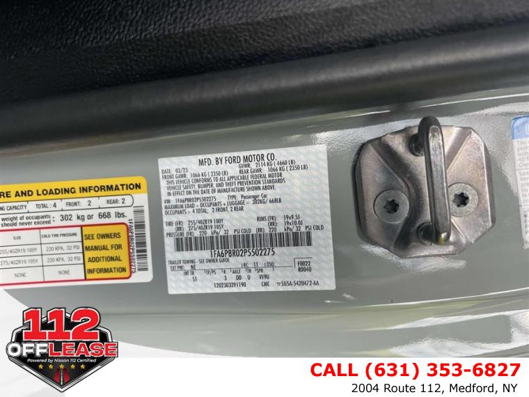 For more information on this 2023 Ford Mustang, please call 112 Off Lease at (631) 353-6827 or with the contact form on this page. This vehicle's vin number is 1FA6P8R02P5502275 and is recorded as being in stock at 112 Off Lease at 2004 Route 112 in Medford. See all cars from this dealership.