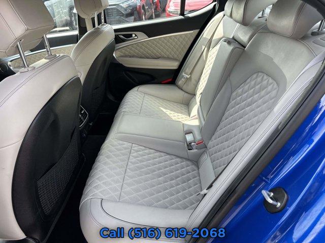 PREMIUM FIRST AID KIT, OBSIDIAN BLK/SANDSTORM GY NAPPA LEATHER SEATING SURFACES, WHEEL LOCKS, MALLORCA BLUE, SPORT PRESTIGE PACKAGE -inc: Option Group 04 Brembo Braking System Power Trunk Electronically Controlled Suspension Heads-Up Display (HUD) Microfiber Suede Headliner & Pillars Surround View Monitor w/Blind Spot View Monitor Limited-Slip Differential Option Group 03 Variable Exhaust Valve System Sport Aluminum Trim Dark Chrome Grille & Daylight Opening Trim Forward & Reverse Parking Distance Warning Acoustic Front Door Glass Radio: AM/FM/SiriusXM/HD Lexicon Prem Audio System QuantumLogic surround sound 15 high efficiency speakers including 2 subwoofers Lexicon 11-channel digital external amplifier speed-sensing 5th generation navigation system w/10.25 touchscreen dynamic voice recognition connected routing over the air updates Android Auto and Apple CarPlay Bluetooth hands-free phone and audio streaming system and 4 USB ports Genesis Digital Key Wheels: 19 x 8.0J Fr & 19 x 8.5J Rr Sport Alloy Power Driver Seat Bolster & Cushion Extension Alloy Pedals Ven, BUMPER APPLIQUE, MUDGUARDS, Turbocharged, All Wheel Drive, Power Steering, ABS, 4-Wheel Disc Brakes, Brake Assist, Brake Actuated Limited Slip Differential, Aluminum Wheels, Tires - Front Performance, Tires - Rear Performance, Temporary Spare Tire, Heated Mirrors, Power Mirror(s), Integrated Turn Signal Mirrors, Power Folding Mirrors, Rear Defrost, Intermittent Wipers, Variable Speed Intermittent Wipers, Rain Sensing Wipers, Daytime Running Lights, Automatic Headlights, Headlights-Auto-Leveling, LED Headlights, Automatic Highbeams, AM/FM Stereo, Navigation System, Satellite Radio, MP3 Capability, Steering Wheel Audio Controls, Bluetooth Connection, Telematics, Auxiliary Audio Input, HD Radio, Smart Device Integration, Requires Subscription, MP3 Capability, Bluetooth Connection, Power Driver Seat, Power Passenger Seat, Bucket Seats, Heated Front Seat(s), Driver Adjustable Lumbar, Passenger Adjustable Lumbar, Seat Memory, Pass-Through Rear Seat, Rear Bench Seat, Adjustable Steering Wheel, Trip Computer, Power Windows, Telematics, Requires Subscription, Leather Steering Wheel, Heated Steering Wheel, Keyless Entry, Power Door Locks, Keyless Start, Keyless Entry, Power Door Locks, Remote Trunk Release, Hands-Free Liftgate, Universal Garage Door Opener, Cruise Control, Adaptive Cruise Control, Climate Control, Multi-Zone A/C, A/C, Leather Seats, Auto-Dimming Rearview Mirror, Driver Vanity Mirror, Passenger Vanity Mirror, Driver Illuminated Vanity Mirror, Passenger Illuminated Visor Mirror, Floor Mats, Keyless Start, Smart Device Integration, Requires Subscription, Navigation System, Smart Device Integration, Mirror Memory, Seat Memory, Power Windows, Power Door Locks, Trip Computer, Mirror Memory, Seat Memory, Security System, Immobilizer, Cruise Control Steering Assist, Traction Control, Stability Control, Traction Control, Front Side Air Bag, Telematics, Requires Subscription, Blind Spot Monitor, Cross-Traffic Alert, Lane Departure Warning, Lane Keeping Assist, Lane Departure Warning, Front Collision Mitigation, Driver Monitoring, Tire Pressure Monitor, Driver Air Bag, Passenger Air Bag, Front Head Air Bag, Rear Head Air Bag, Passenger Air Bag Sensor, Knee Air Bag, Driver Restriction Features, Child Safety Locks, Back-Up Camera