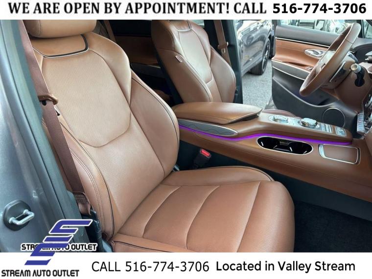Navigation System, Option Group 02, Advanced Package, Cargo Package, Select Package, 9 Speakers, AM/FM radio: SiriusXM, Lexicon Premium Audio, Radio: AM/FM/SiriusXM/HD Premium Audio System, Air Conditioning, Automatic temperature control, Front dual zone A/C, Rear window defroster, 2nd Row 110V AC Power Outlet, Power driver seat, Power steering, Power windows, Remote keyless entry, Steering wheel mounted audio controls, Four wheel independent suspension, Speed-sensing steering, Traction control, 4-Wheel Disc Brakes, ABS brakes, Anti-whiplash front head restraints, Dual front impact airbags, Dual front side impact airbags, Emergency communication system, Front anti-roll bar, Knee airbag, Low tire pressure warning, Monobloc Front Brakes, Occupant sensing airbag, Overhead airbag, Rear anti-roll bar, Power Tilt & Slide Panoramic Sunroof, Power Liftgate, Brake assist, Electronic Stability Control, Exterior Parking Camera Rear, Rear Parking Sensors, Auto High-beam Headlights, Delay-off headlights, Fully automatic headlights, First Aid Kit, Panic alarm, Security system, Speed control, Bumpers: body-color, Front & Rear Mudguards, Heated door mirrors, Power door mirrors, Power Folding ECM Mirrors w/Genesis Logo Lamp, Remote Smart Parking Assist, Reverse Parking Collision-Avoidance Assist, Spoiler, Turn signal indicator mirrors, Adjustable Interior Ambient Lighting, Advanced Rear Occupant Alert, Aluminum Trim w/Spin Brushed Pattern, Android Auto & Apple CarPlay, Auto-dimming Rear-View mirror, Blind-Spot View Monitor, Driver door bin, Driver vanity mirror, Front reading lights, Garage door transmitter: HomeLink, Heated Steering Wheel, Illuminated entry, Integrated Memory System (IMS), Manual Rear Door Shades, Outside temperature display, Overhead console, Passenger vanity mirror, Power Telescoping Steering Wheel, Rear reading lights, Rear seat center armrest, Surround View Monitor, Tachometer, Telescoping steering wheel, Tilt steering wheel, Trip computer, Up Seatback Cargo Mat, Wave Line Backlit Trim, 4-Way Power Lumbar Front Passenger Seat, Front Bucket Seats, Heated Front Bucket Seats, Heated front seats, Leather Seating Surfaces, Leatherette Seating Surfaces, Power passenger seat, Split folding rear seat, Ventilated Front Seats, Cargo Net, Front Center Armrest w/Storage, Passenger door bin, Alloy wheels, Wheels: 18" Real Steel Gray Alloy, Wheels: 19" Dark Hyper Silver Aluminum, Rain sensing wipers, Rear window wiper, Speed-Sensitive Wipers, Variably intermittent wipers, 4.181 Axle Ratio, * NYS INSPECTION INCLUDED *, * FULL INTERIOR / EXTERIOR DETAIL *, * BLUETOOTH *, * SUNROOF / MOONROOF*, * LEATHER SEATS *, * LIMITED NYS LEMON LAW WARRANTY INCLUDED *, *FRESH OIL CHANGE *, * 150 MULTI POINT INSPECTION *, APPLE CAR PLAY/ANDROID AUTO
