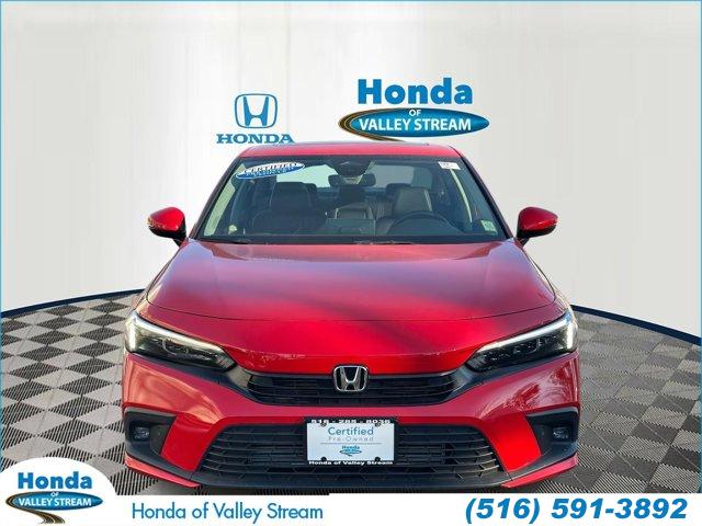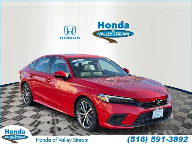 Recent Arrival! CARFAX One-Owner. Red 2023 Honda Civic Touring FWD CVT 1.5L I-4 DI DOHC Turbocharged Leather.Honda of Valley Stream, NY has been serving drivers in Brooklyn, Queens, the Five Towns, and Long Island since 1982. Family-owned and operated, Honda of Valley Stream has always kept the same automotive philosophy in which our customers always come first. 31/38 City/Highway MPG