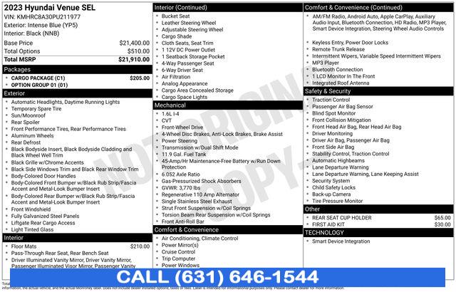 2023 Hyundai Venue SEL Intense Blue CVT Clean CARFAX. 29/33 City/Highway MPG