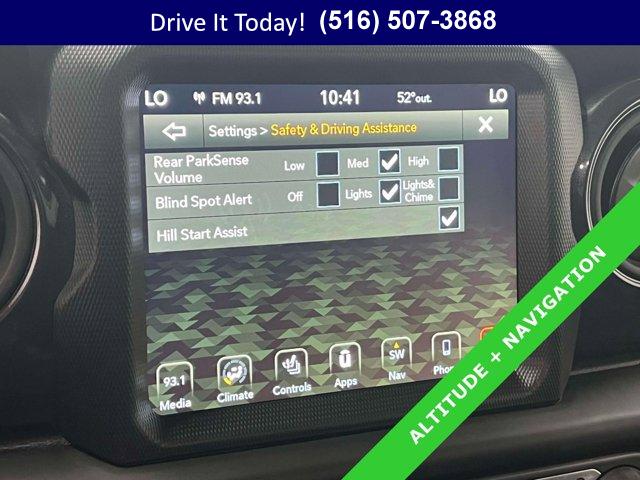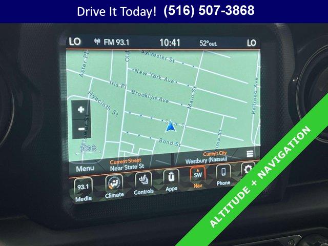 SIRIUSXM SATELLITE RADIO, COLD WEATHER GROUP -inc: Heated Steering Wheel Heated Front Seats, ENGINE: 3.6L V6 24V VVT ETORQUE UPG I -inc: 600 Amp Maintenance Free Battery 48V Belt Starter Generator GVWR: 5 460 lbs Delete Alternator, CONVENIENCE GROUP -inc: Universal Garage Door Opener, QUICK ORDER PACKAGE 25L ALTITUDE -inc: Engine: 3.6L V6 24V VVT eTorque UPG I Transmission: 8-Speed Automatic (850RE) Speed Sensitive Power Locks Freedom Panel Storage Bag Rear Window Defroster Rear Window Wiper/Washer No Soft Top Automatic Headlamps Altitude Package 110 MPH Vehicle Max Speed Calibration Front 1-Touch Down Power Windows Body Color Grille w/Gloss Black Rings Power Heated Mirrors Black Interior Accents Wizard Black Instrument Panel Bezels Premium Wrapped Steering Wheel Security Alarm Bridgestone Brand Tires Remote Keyless Entry Sun Visors w/Illuminated Vanity Mirrors, 8.4 RADIO & PREMIUM AUDIO GROUP -inc: Off-Road Info Pages SiriusXM Traffic Plus Alpine Premium Audio System 220 Amp Alternator SiriusXM Satellite Radio HD Radio Radio: Uconnect 4C Nav w/8.4 Display Rear View Auto Dim Mirror 1-Year SiriusXM Guardian Trial 5-Year SiriusXM Travel Link Service GPS Navigation 5-Year SiriusXM Traffic Service SiriusXM Travel Link 4G LTE Wi-Fi Hot Spot Emergency/Assistance Call 8.4 Touchscreen Display, RADIO: UCONNECT 4C NAV W/8.4 DISPLAY, GVWR: 5 460 LBS, BLACK CLEARCOAT, SAFETY GROUP -inc: ParkSense Rear Park Assist System Blind Spot & Cross Path Detection LED Taillamps Injection Molded Black Rear Bumper, 3.45 OVERALL TOP GEAR RATIO (STD), TRANSMISSION: 8-SPEED AUTOMATIC (850RE) -inc: Anti-Lock 4-Wheel Disc Brakes Dana M200 Rear Axle Selec-Speed Control, BLACK CLOTH LOW-BACK BUCKET SEATS, TECHNOLOGY GROUP -inc: Air Conditioning w/Auto Temp Control Cluster 7.0 TFT Color Display 2-Door Passive Entry Front Door Locks SiriusXM Satellite Radio Air Filtering, TIRES: 255/70R18 ALL SEASON (STD), ALPINE PREMIUM AUDIO SYSTEM -inc: 220 Amp Alternator