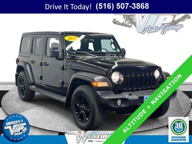 Certified Pre-Owned capability meets everyday comfort in this 2023 Jeep Wrangler 4D Sport Utility, engineered for confident driving in all seasons. Finished in Black Clearcoat with matching black cloth seats, it blends rugged style with practical refinement. The proven 3.6L V6 and 8-speed automatic deliver smooth response in traffic and strong torque when the road turns to snow, gravel, or sand, while 4WD traction brings peace of mind on wet or wintry mornings. With 33,618 miles, it is ready for your daily commute, weekend trails, and everything in between.Altitude Package details add a clean, modern look with gloss black aluminum wheels, deep tint sunscreen windows, and a body color grille with gloss black rings. The Black 3-Piece Hard Top with MOPAR headliner helps quiet the cabin and insulate against heat and cold, and the Freedom Panel storage bag keeps the front panels secure when you want open-air driving. Inside, automatic temperature control with air filtering maintains a comfortable cabin, and heated front seats plus a heated steering wheel make cold starts far easier on frosty Northeast mornings. Power heated mirrors, a rear window defroster, and a rear wiper round out the all-weather practicality.Stay connected and in control with the available Uconnect 4C Nav system on an 8.4-inch multimedia display that supports Apple CarPlay, Google Android Auto, HD Radio, and SiriusXM. The Alpine Premium Audio System upgrades your soundtrack, while 4G LTE Wi-Fi Hot Spot capability keeps passengers online. You also get SiriusXM Guardian emergency and assistance services, Travel Link, and Traffic Plus to help plan smarter routes. A 7.0-inch color driver display and Off-Road Info Pages put useful data in view. Convenience is built in with passive entry, remote keyless entry, an auto-dimming rear-view mirror, a universal garage door opener, and steering wheel media controls. Advanced driver confidence comes from ParkView Rear Back-Up Camera, ParkSense Rear Park Assist System, and Blind Spot & Cross Path Detection, plus LED taillamps, automatic headlamps, and a security alarm for added assurance & more.This Wrangler has been used as intended and presents with 33,618 miles. It pairs trail-capable hardware with day-to-day comfort, making it a smart choice for drivers who want authentic Jeep utility without sacrificing daily drivability.VIP+ ProgramEnjoy our VIP+ Program benefits that make ownership easier from day one. Get Unlimited Oil and Filter changes for 1 year, then included with every factory maintenance thereafter. Receive Complimentary NYS Inspections, Complimentary Loaner Cars, and Complimentary 24/7 Rescue and Towing. These benefits are For Life and Transferable, adding lasting value long after you drive home.As a Jeep Certified Pre-Owned Vehicle (CPOV), this Wrangler adds factory-backed confidence. Coverage includes a 7-Year / 100,000-Mile Powertrain Limited Warranty, a thorough 125-Point Inspection, 24-Hour Roadside Assistance, a Rental Car Allowance, and a CARFAX Vehicle History Report. Shop with assurance knowing it meets strict Jeep CPOV standards.More About UsEvery vehicle we offer is hand selected for quality and long-term reliability, then thoughtfully reconditioned before sale so you can purchase with confidence. Our certified models meet strict criteria, including brake life no less than 50 percent, to help ensure you get a dependable ride from day one. We emphasize trust, preparation, and peace of mind as a proud member of the VIP Auto Group serving the community since 1957. We Will Satisfy You!A Wrangler like this brings commuter-friendly comfort, winter confidence, and long-term value. Heated seats, a heated steering wheel, 4WD traction, and a hard top help you handle slick mornings and slushy parking lots with ease, while the 8-speed automatic, advanced safety tech, and robust CPOV protection support your daily routine in Long Island and trips across New York.If your looking for a used car on Long Island or browsing for a used truck in new york, this certified Jeep Wrangler stands out as an affordable used car with genuine capability and modern tech. Call now, schedule a test drive, or learn more at WestburyJeep.com, where you can view up-to-date inventory and current pricing. Description and features are a general overview and may vary by vehicle. Please confirm exact equipment at time of purchase.
