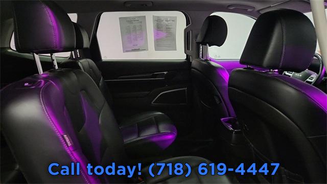 Navigation System, S Sunroof Package, 6 Speakers, AM/FM radio: SiriusXM, Radio data system, Radio: AM/FM Display Audio System, Rear audio controls, Air Conditioning, Automatic temperature control, Front dual zone A/C, Rear air conditioning, Rear window defroster, Power driver seat, Power steering, Power windows, Remote keyless entry, Smart Key w/ Push Button and Remote Start, Steering wheel mounted audio controls, Four wheel independent suspension, Speed-sensing steering, Traction control, 4-Wheel Disc Brakes, ABS brakes, Dual front impact airbags, Dual front side impact airbags, Emergency communication system: 911 Connect, Front anti-roll bar, Knee airbag, Low tire pressure warning, Occupant sensing airbag, Overhead airbag, Rear anti-roll bar, Rear side impact airbag, Power Sunroof w/Sunshade, Brake assist, Electronic Stability Control, Exterior Parking Camera Rear, Auto High-beam Headlights, Delay-off headlights, Fully automatic headlights, Panic alarm, Security system, Speed control, Bumpers: body-color, Heated door mirrors, Power door mirrors, Roof rack: rails only, Spoiler, Turn signal indicator mirrors, Apple CarPlay & Android Auto, Carpet Floor Mats, Driver door bin, Driver vanity mirror, Front reading lights, Illuminated entry, Leather Shift Knob, Leather steering wheel, Outside temperature display, Overhead console, Passenger vanity mirror, Rear reading lights, Tachometer, Telescoping steering wheel, Tilt steering wheel, Trip computer, 3rd row seats: split-bench, Front Bucket Seats, Front Center Armrest, Heated Front Bucket Seats, Heated front seats, Reclining 3rd row seat, Split folding rear seat, SynTex Synthetic Leather Seat Trim, Passenger door bin, Alloy wheels, Wheels: 20" x 7.5" Black Finish, Rear window wiper, Variably intermittent wipers, 3.648 Axle Ratio