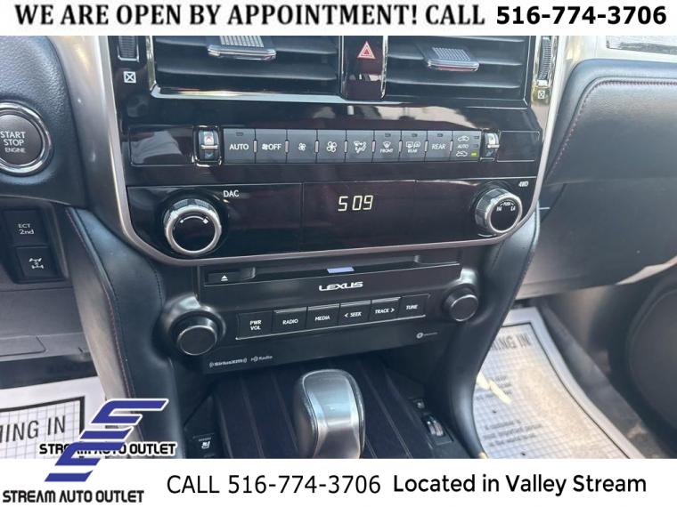 Navigation system: Lexus Enform Dynamic Navigation, Premium Package, 9 Speakers, AM/FM radio: SiriusXM, CD player, Radio data system, Radio: Lexus Multimedia System w/Navigation, Air Conditioning, Automatic temperature control, Dual Front & Rear Auto Air Conditioner, Front dual zone A/C, Rear window defroster, Memory seat, Power driver seat, Power steering, Power windows, Remote keyless entry, Steering wheel memory, Steering wheel mounted audio controls, Speed-sensing steering, Traction control, 4-Wheel Disc Brakes, ABS brakes, Anti-whiplash front head restraints, Dual front impact airbags, Dual front side impact airbags, Emergency communication system: Safety Connect (3-year trial), Front anti-roll bar, Front wheel independent suspension, Knee airbag, Low tire pressure warning, Occupant sensing airbag, Overhead airbag, Rear anti-roll bar, Rear side impact airbag, Power moonroof, Brake assist, Electronic Stability Control, Exterior Parking Camera Rear, Auto High-beam Headlights, Delay-off headlights, Fully automatic headlights, Panic alarm, Security system, Speed control, Bumpers: body-color, Heated door mirrors, Illuminated running boards, LED Front Fog & Driving Lamp, Power door mirrors, Roof rack: rails only, Spoiler, Turn signal indicator mirrors, Apple CarPlay/Android Auto, Auto tilt-away steering wheel, Auto-dimming Rear-View mirror, Compass, Driver door bin, Driver vanity mirror, Front reading lights, Garage door transmitter: HomeLink, Heated Wood & Leather Steering Wheel, Illuminated entry, Leather Shift Knob, Leather steering wheel, Outside temperature display, Overhead console, Passenger seat mounted armrest, Passenger vanity mirror, Rear reading lights, Rear seat center armrest, Tachometer, Telescoping steering wheel, Tilt steering wheel, Trip computer, 3rd row seats: split-bench, Driver's Seat Mounted Armrest, Front & Rear Heated Seats, Front Bucket Seats, NuLuxe Seat Trim, NuLuxe Seat Trim (EA), Power passenger seat, Split folding rear seat, Ventilated Front Seats, Passenger door bin, 18" x 7.5J Aluminum Alloy Wheels, Alloy wheels, Windshield Wiper Control w/Rain Sensor, Rear window wiper, Variably intermittent wipers, Windshield De-Icer, 3.909 Axle Ratio, * NYS INSPECTION INCLUDED *, * FULL INTERIOR / EXTERIOR DETAIL *, * BACK UP CAMERA *, * BLUETOOTH *, * SUNROOF / MOONROOF*, * LIMITED NYS LEMON LAW WARRANTY INCLUDED *, *FRESH OIL CHANGE *, * 150 MULTI POINT INSPECTION *, APPLE CAR PLAY/ANDROID AUTO