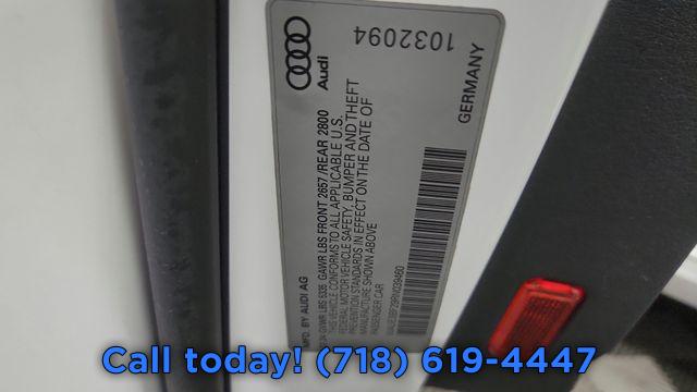 Navigation system: Audi connect NAV & PLUS, Convenience Package, Executive Package, LED Interior Lighting Plus Package, Premium Plus Package, 10 Speakers, AM/FM radio: SiriusXM w/ 360L, Bang & Olufsen Premium Sound System w/3D Sound, Radio data system, Radio: Audi MMI Nav Plus w/MMI Touch Response, 4-Zone Automatic Climate Control, Air Conditioning, Automatic temperature control, Front dual zone A/C, Rear air conditioning, Rear window defroster, Heated Rear Seats, Memory seat, Open & Close Power Trunk, Power driver seat, Power steering, Power windows, Remote keyless entry, Steering wheel memory, Steering wheel mounted audio controls, Four wheel independent suspension, Speed-sensing steering, Traction control, 4-Wheel Disc Brakes, ABS brakes, Dual front impact airbags, Dual front side impact airbags, Emergency communication system: Audi connect CARE (limited time subscription), Front anti-roll bar, Knee airbag, Low tire pressure warning, Occupant sensing airbag, Overhead airbag, Rear anti-roll bar, Rear side impact airbag, Power moonroof, Brake assist, Electronic Stability Control, Exterior Parking Camera Rear, Auto High-beam Headlights, Delay-off headlights, Front fog lights, Dual-Pane Acoustic Glass for Side Windows, Panic alarm, Security system, Adaptive Cruise Assist w/Lane Guidance, Speed control, Auto-dimming door mirrors, Bumpers: body-color, Heated door mirrors, Matrix-Design LED Headlights, Power door mirrors, Turn signal indicator mirrors, Audi Side Assist w/Pre Sense Rear, Auto tilt-away steering wheel, Auto-dimming Rear-View mirror, Compass, Contrast Stitching on Door Armrests & Knee Bolster, Driver door bin, Driver vanity mirror, Front & Rear Door Audi Beam-Rings, Front reading lights, Garage door transmitter: HomeLink, Genuine wood console insert, Genuine wood dashboard insert, Genuine wood door panel insert, Heated Steering Wheel, Illuminated entry, Leather Shift Knob, Leather steering wheel, Outside temperature display, Overhead console, Passenger vanity mirror, Rear reading lights, Rear seat center armrest, Tachometer, Telescoping steering wheel, Tilt steering wheel, Top View Camera System w/Virtual 360 View, Traffic Sign Recognition, Trip computer, Wireless Phone Charging Pad, Front Bucket Seats, Front Center Armrest, Heated Front Seats, Heated front seats, Leather Seating Surfaces, Power passenger seat, Split folding rear seat, Ventilated Front Seats, Passenger door bin, Alloy wheels, Wheels: 19" 5-Arm Platinum Gray Dynamic Design, Rain sensing wipers, Speed-Sensitive Wipers, Variably intermittent wipers