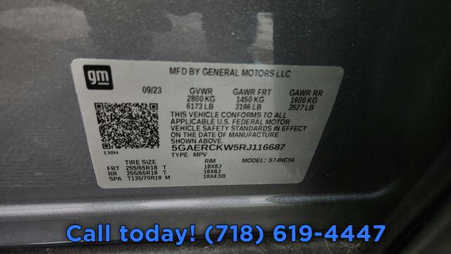 Navigation System, Preferred Equipment Group 1SN, 10 Speakers, AM/FM radio: SiriusXM with 360L, Bose Performance-Enhanced 10-Speaker System, Premium audio system: Buick Infotainment System, Radio data system, Radio: Buick Infotainment Sys AM/FM Stereo w/Nav, SiriusXM w/360L, Air Conditioning, Automatic temperature control, Front dual zone A/C, Rear air conditioning, Rear window defroster, 6-Way Power Front Passenger Seat Adjuster, 8-Way Power Driver Seat Adjuster, Heads-Up Display, Memory seat, Power driver seat, Power steering, Power windows, Remote keyless entry, Steering wheel memory, Steering wheel mounted audio controls, Four wheel independent suspension, Speed-sensing steering, Traction control, 4-Wheel Disc Brakes, ABS brakes, Dual front impact airbags, Dual front side impact airbags, Emergency communication system: OnStar and Buick connected services capable, Front anti-roll bar, Low tire pressure warning, Occupant sensing airbag, Overhead airbag, Rear anti-roll bar, Power Liftgate, Brake assist, Electronic Stability Control, Exterior Parking Camera Rear, Auto High-beam Headlights, Delay-off headlights, Fully automatic headlights, Panic alarm, Security system, Speed control, Auto-dimming door mirrors, Bumpers: body-color, Heated door mirrors, Power door mirrors, Roof rack: rails only, Spoiler, Turn signal indicator mirrors, Auto-dimming Rear-View mirror, Compass, Driver door bin, Driver vanity mirror, Front reading lights, Garage door transmitter, Heated steering wheel, Illuminated entry, Leather steering wheel, Outside temperature display, Overhead console, Passenger vanity mirror, Rear reading lights, Tachometer, Telescoping steering wheel, Tilt steering wheel, Trip computer, Vehicle Health Management, Voltmeter, Wireless Apple CarPlay/Wireless Android Auto, 3rd row seats: split-bench, 7-Passenger Seating, Driver 4-Way Power Lumbar Seat Adjuster, Front Bucket Seats, Front Center Armrest, Front Passenger 4-Way Power Lumbar Seat Adjuster, Heated Driver & Front Passenger Seats, Heated front seats, Heated rear seats, Perforated Leather-Appointed Seat Trim, Power passenger seat, Ventilated Driver & Front Passenger Seats, Ventilated front seats, Passenger door bin, 18" Aluminum Wheels, Alloy wheels, Rear window wiper, Variably intermittent wipers, 3.49 Final Drive Axle Ratio