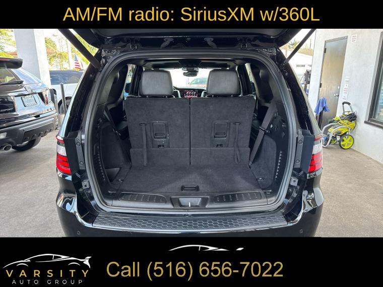 Navigation system: TomTom, Blacktop Package, Quick Order Package 22T R/T Plus, 9 Speakers, AM/FM radio: SiriusXM w/360L, Radio data system, Radio: Uconnect 5 Nav w/10.1" Display, Air Conditioning, Automatic temperature control, Front dual zone A/C, Rear air conditioning, Rear window defroster, Exterior Mirrors w/Memory, Heated Second Row Seats, Power driver seat, Power steering, Power windows, Radio/Driver Seat/Mirrors Memory, Remote keyless entry, Steering wheel mounted audio controls, Auto-leveling suspension, Four wheel independent suspension, Rear Load Leveling Suspension, Speed-sensing steering, Traction control, 4-Wheel Disc Brakes, ABS brakes, Dual front impact airbags, Dual front side impact airbags, Emergency communication system, Front anti-roll bar, Knee airbag, Low tire pressure warning, Occupant sensing airbag, Overhead airbag, Rear anti-roll bar, Power Sunroof, Power Liftgate, Brake assist, Electronic Stability Control, ParkView Rear Back-Up Camera, Auto High-beam Headlights, Delay-off headlights, Fully automatic headlights, Panic alarm, Security system, Adaptive Cruise Control w/Stop, Speed control, Auto-Dimming Exterior Driver Mirror, Bumpers: body-color, Exterior Mirrors w/Heating Element, Exterior Mirrors w/Supplemental Signals, Gloss Black Badges, Gloss Black Exterior Mirrors, Heated door mirrors, Power 6x9 Multi-Function Foldaway Mirrors, Power door mirrors, Satin Black Dodge Tail Lamp Badge, Spoiler, 115V Auxiliary Power Outlet, 2nd Row Mini Console w/Cupholders, 3rd Row Floor Mat & Mini Console, Apple CarPlay/Android Auto, Auto-dimming Rear-View mirror, Blind Spot w/Trailer Detection, Cloth Bucket Seats w/Shift Insert, Compass, Driver door bin, Driver vanity mirror, Dual Remote USB Port - Charge Only, Front reading lights, Full Speed Forward Collision Warning Plus, Garage door transmitter, Heated steering wheel, Illuminated entry, Leather steering wheel, Leather Wrapped Door Panels, LED Auxiliary Low Beam & Turn Signal, Outside temperature display, Overhead console, Passenger vanity mirror, Power Tilt & Telescopic Steering Column, Rear reading lights, Rear seat center armrest, Red Accent Stitching, Sport steering wheel, Tachometer, Telescoping steering wheel, Tilt steering wheel, Trip computer, Upper/Lower Body Color Rear Fascia, Voltmeter, 2nd Row Fold/Tumble Captain Chairs, 2nd Row Seat Mounted Inboard Armrests, 3rd row seats: split-bench, 6-Passenger Seating, Front Bucket Seats, Heated front seats, Leather Trimmed Bucket Seats, Power 8-Way Driver Memory 8-Way Passenger Seats, Power Driver/Passenger 4-Way Lumbar Adjust, Split folding rear seat, Ventilated Front Seats, Black Roof Rails, Floor Console w/Leather Armrest, Front Center Armrest w/Storage, Integrated Roof Rail Crossbars, Passenger door bin, 7 & 4 Pin Wiring Harness, Class IV Receiver Hitch, Trailer Brake Control, Wheels: 20" x 8.0" Black Noise Aluminum, Rain sensing wipers, Rear window wiper, Speed-Sensitive Wipers, Variably intermittent wipers, 3.09 Rear Axle Ratio, The Price you See, is the Price You Pay!!!, 2024 Dodge Durango R/T Plus, 5.7L Hemi V8, DB Black Crystal Clearcoat, Black Leather, Clean CARFAX