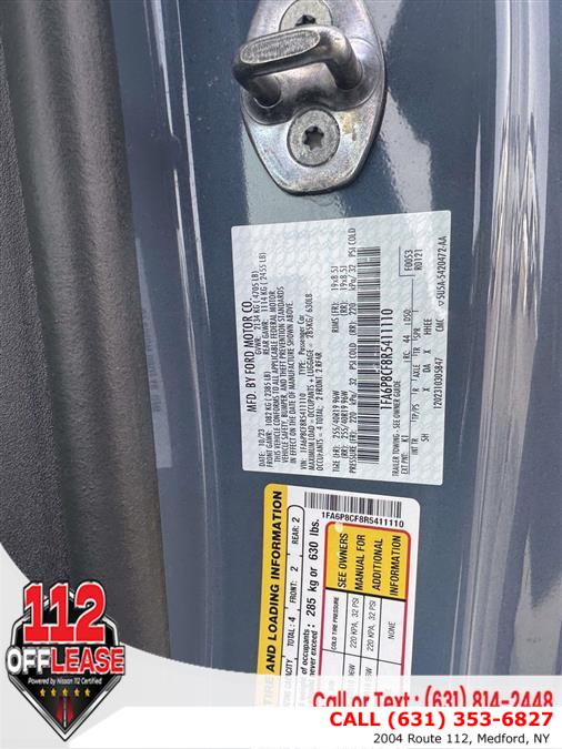For more information on this 2024 Ford Mustang, please call 112 Off Lease at (631) 353-6827 or with the contact form on this page. This vehicle's vin number is 1FA6P8CF8R5411110 and is recorded as being in stock at 112 Off Lease at 2004 Route 112 in Medford. See all cars from this dealership.