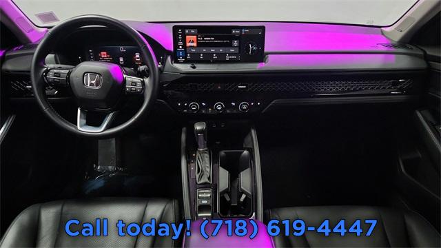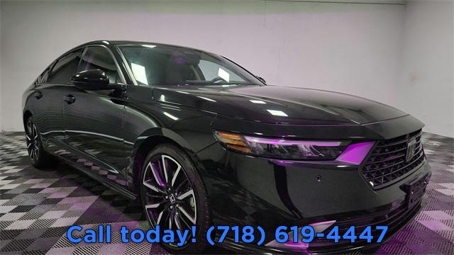 CARFAX One-Owner. 2024 Honda Accord Hybrid Touring 2.0L 16V DOHC, AM/FM radio, Auto High-beam Headlights, Automatic temperature control, Blind Spot Information (BSI) System warning, Bose Premium Sound System, Exterior Parking Camera Rear, Front dual zone A/C, Fully automatic headlights, Lane departure: Lane Keeping Assist System (LKAS) active, Navigation System, Power moonroof, Remote keyless entry, Steering wheel mounted audio controls.