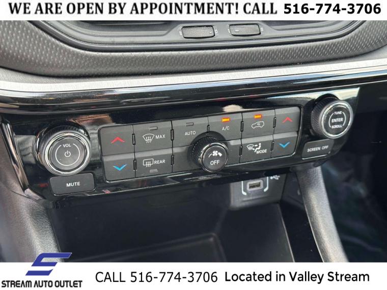 Quick Order Package 29E, 6 Speakers, AM/FM radio: SiriusXM, Radio: Uconnect 5 w/10.1" Display, SiriusXM Radio Service, Air Conditioning, Automatic temperature control, Front dual zone A/C, Rear window defroster, Power steering, Power windows, Remote keyless entry, Steering wheel mounted audio controls, Four wheel independent suspension, Traction control, 4-Wheel Disc Brakes, ABS brakes, Dual front impact airbags, Dual front side impact airbags, Emergency communication system: Jeep Connect, Front anti-roll bar, Knee airbag, Low tire pressure warning, Occupant sensing airbag, Overhead airbag, Rear anti-roll bar, Brake assist, Electronic Stability Control, ParkView Rear Back-Up Camera, Auto High-beam Headlights, Delay-off headlights, Front fog lights, Fully automatic headlights, Panic alarm, Security system, Speed control, Bumpers: body-color, Front License Plate Bracket, Heated door mirrors, Power door mirrors, Spoiler, Turn signal indicator mirrors, 10.1" Touchscreen Display, 4G LTE Wi-Fi Hot Spot, Auto-dimming Rear-View mirror, Compass, Driver door bin, Driver vanity mirror, For Details, Visit DriveUconnect.com, For More Info, Call 800-643-2112, Front reading lights, Global Telematics Box Module (TBM), Illuminated entry, Leather Shift Knob, Leather steering wheel, Outside temperature display, Overhead console, Passenger vanity mirror, Premium Cloth/Leather Trim Bucket Seats, Rear seat center armrest, SiriusXM Guardian - Included Trial (B), Tachometer, Telescoping steering wheel, Tilt steering wheel, Trip computer, Front Bucket Seats, Split folding rear seat, Front Center Armrest w/Storage, Passenger door bin, Alloy wheels, Wheels: 17" x 6.5" Painted Black Aluminum, Rain sensing wipers, Rear window wiper, Variably intermittent wipers, 4.398 Final Drive Ratio, * NYS INSPECTION INCLUDED *, * FULL INTERIOR / EXTERIOR DETAIL *, * BACK UP CAMERA *, * BLUETOOTH *, * LIMITED NYS LEMON LAW WARRANTY INCLUDED *, *FRESH OIL CHANGE *, * 150 MULTI POINT INSPECTION *, APPLE CAR PLAY/ANDROID AUTO