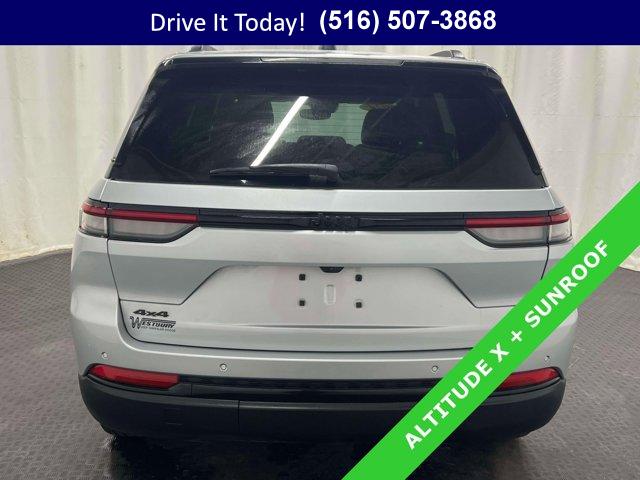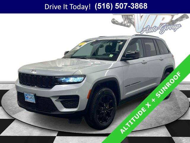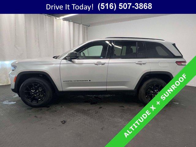 • Certified confidence meets year-round traction in this 2024 Jeep Grand Cherokee 4D Sport Utility, powered by the smooth 3.6L V6 and an 8-speed automatic paired with 4WD. Finished in Silver Zynith with a Global Black artificial leather interior, it blends clean style with everyday comfort. The ride is calm and composed thanks to Normal Duty Suspension and four wheel independent suspension, while the Altitude X design cues add gloss black exterior accents, a black headliner, and a tasteful de-badged look. A power sunroof brightens the cabin, and the split folding rear seat keeps daily life flexible.Inside, an 8.4 inch multimedia display with Uconnect 5 puts your drive info and audio within easy reach, supported by steering wheel media controls and a convenient wireless charging pad. Cold mornings are easy with heated front seats and a heated steering wheel, and the power liftgate makes loading up simple even when your hands are full. Remote Start gets everything ready before you climb in, while dual-zone automatic climate control keeps everyone comfortable. Rain-sensing and speed-sensitive wipers help maintain a clear view, and ParkView Rear Back-Up Camera assists in tight spots. For confidence on busy routes, you get multiple airbags including knee airbags, Electronic Stability Control, Traction Control, ABS with 4-wheel disc brakes, low tire pressure warning with Selectable Tire Fill Alert, an emergency communication system, a security system, and more.This Grand Cherokee shows 16,204 miles and has been thoughtfully equipped for daily driving with fully painted aluminum wheels, heated power mirrors, remote keyless entry, a power driver seat, power windows and door mirrors, rear window defroster and wiper, plus handy touches like a 115V auxiliary power outlet, compass, trip computer, and outside temperature display. It is a smart choice if you want an affordable used car with modern comfort and capability.VIP+ ProgramDrive with long-term peace of mind. Our VIP+ Program includes Unlimited Oil and Filter changes for 1 year, then included with every factory maintenance thereafter, plus Complimentary NYS Inspections, Complimentary Loaner Cars, and Complimentary 24/7 Rescue and Towing. These benefits are For Life and Transferable, adding real value to your ownership experience.Purchase With ConfidenceThis Jeep is a Certified Pre-Owned Vehicle (CPOV). Coverage includes a 7-Year / 100,000-Mile Powertrain Limited Warranty, a thorough 125-Point Inspection, 24-Hour Roadside Assistance, a Rental Car Allowance, and a CARFAX Vehicle History Report. It is certification you can trust from Jeep, built to support your driving for years to come.More About UsEvery vehicle we offer is hand selected for quality and long-term reliability. Our team completes thoughtful reconditioning prior to sale so you can purchase with confidence from the start. Certified vehicles must meet strict standards, including brake life no less than 50 percent, to help ensure safety and durability. We are a proud member of the VIP Auto Group serving the community since 1957. We Will Satisfy You!For commuters and weekend getaways alike, the Grand Cherokee?s 4WD and heated amenities deliver calm control in rain, slush, and cold snaps while the power liftgate, remote start, and intuitive multimedia make every errand easier. If you?re looking for a certified Jeep Grand Cherokee or a used car on Long Island, this SUV brings capability, safety, and long-term value together in one well-rounded package.New York shoppers are invited to call now, schedule a test drive, or learn more at WestburyJeep.com, where you can view up-to-date inventory and current pricing. This description and feature list are a general overview and may vary by vehicle.