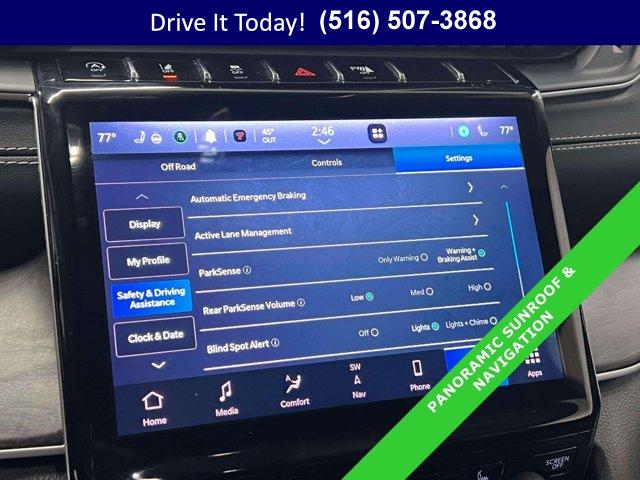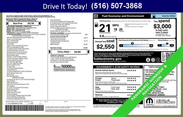 One owner. Velvet Red Pearlcoat exterior and Global Black interior, Limited trim. Heated Seats, Third Row Seat, Moonroof, Navigation, Power Liftgate, 4x4, Aluminum Wheels, Captains Chairs, 9 AMPLIFIED SPEAKERS W/SUBWOOFER , DUAL PANE PANORAMIC SUNROOF , ENGINE: 3.6L V6 24V VVT UPG I W/ESS, TRANSMISSION: 8-SPEED AUTOMATIC (8HP5. Approx. Original Base Sticker Price: $49,900*.KEY FEATURES INCLUDEThird Row Seat, Navigation, 4x4, Quad Bucket Seats, Power Liftgate.OPTION PACKAGESDUAL PANE PANORAMIC SUNROOF Interior Rear Facing Camera, 9 AMPLIFIED SPEAKERS W/SUBWOOFER 506 Watt Amplifier, ENGINE: 3.6L V6 24V VVT UPG I W/ESS (STD). Jeep Limited with Velvet Red Pearlcoat exterior and Global Black interior features a V6 Cylinder Engine with 293 HP at 6400 RPM*.EXPERTS ARE SAYINGGreat Gas Mileage: 25 MPG Hwy.VISIT US TODAYWe hand select the finest automobiles possible, recondition as required so you do not have to worry about anything shortly down the road. Our Certified vehicles for example all have more than 50% brake life, most have brand new brakes installed front and rear and it does not end there.WESTBURY VIPAmericas #1 VIP Plus Program includes Complimentary Loaner Cars, UnlimitedOil & Filter changes for 1 yr. & then included with every factorymaintenance, Courtesy Shuttle to work, home or any other location, ExpressLube 30 minutes or less w/ no appointment necessary, Complimentary NYSI, 24/7 Rescue & Towing.