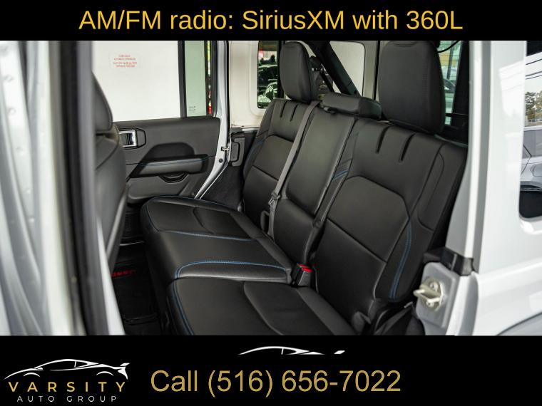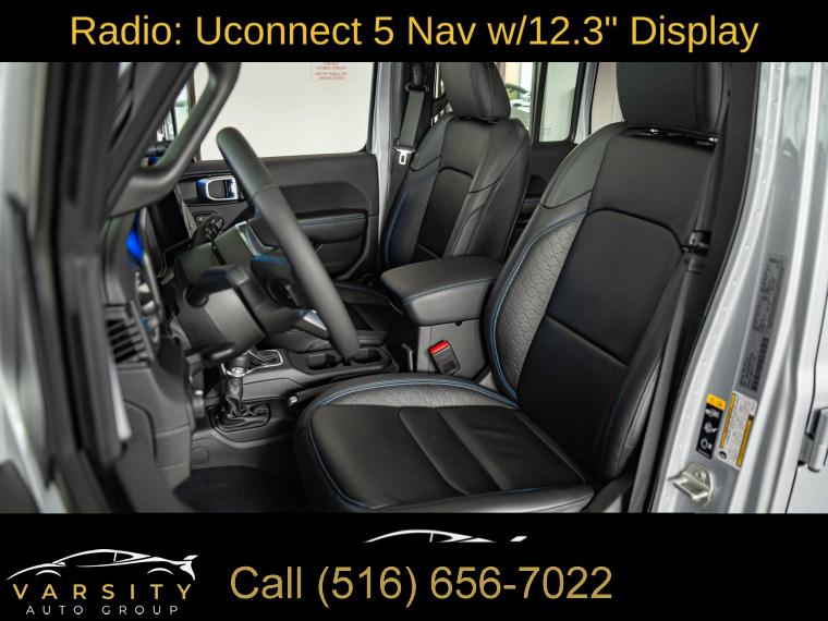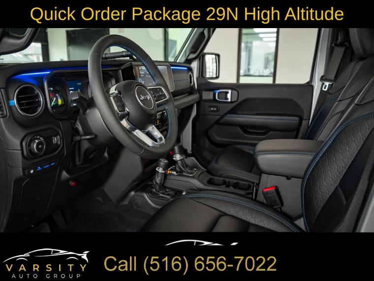 Navigation System, Quick Order Package 29N High Altitude, Convertible HardTop, 9 Speakers, AM/FM radio: SiriusXM with 360L, Radio data system, Radio: Uconnect 5 Nav w/12.3" Display, Air Conditioning, Automatic temperature control, Front dual zone A/C, Rear window defroster, Power driver seat, Power steering, Power windows, Remote keyless entry, Steering wheel mounted audio controls, Sport Suspension, Traction control, 4-Wheel Disc Brakes, ABS brakes, Dual front impact airbags, Dual front side impact airbags, Emergency communication system: Jeep Connect, Front anti-roll bar, Integrated roll-over protection, Low tire pressure warning, Occupant sensing airbag, Overhead airbag, Rear anti-roll bar, Sky 1-Touch Power Top, Brake assist, Electronic Stability Control, ParkView Rear Back-Up Camera, Auto High-beam Headlights, Delay-off headlights, Front fog lights, Fully automatic headlights, Panic alarm, Security system, Speed control, Bumpers: body-color, Front License Plate Bracket, Heated door mirrors, Power door mirrors, Turn signal indicator mirrors, Apple CarPlay/Android Auto, Auto-dimming Rear-View mirror, Compass, Driver door bin, Driver vanity mirror, Front reading lights, Garage door transmitter, Heated steering wheel, Illuminated entry, Leather Shift Knob, Nappa Leather Seats, Outside temperature display, Passenger vanity mirror, Rear reading lights, Rear seat center armrest, Tachometer, Telescoping steering wheel, Tilt steering wheel, Trip computer, Voltmeter, Front Bucket Seats, Heated front seats, Power passenger seat, Split folding rear seat, Front Center Armrest w/Storage, Passenger door bin, Alloy wheels, Wheels: 20" x 8" Machined/Painted Gray, Glass rear window, Rear window wiper, Variably intermittent wipers, 3.73 Rear Axle Ratio, The Price you See, is the Price You Pay!!!, 2024 Jeep Wrangler High Altitude 4xe, Silver Zynith Clearcoat, Black w/Nappa Leather Seats, Clean CARFAX