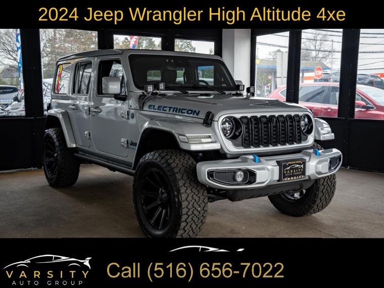 The Price you See, is the Price You Pay!!!, 2024 Jeep Wrangler High Altitude 4xe, Silver Zynith Clearcoat, Black w/Nappa Leather Seats, Sky 1-Touch Power Top, Clean CARFAX, 2.0L I4 DOHC, 3.73 Rear Axle Ratio, 4-Wheel Disc Brakes, 9 Speakers, ABS brakes, Air Conditioning, Alloy wheels, AM/FM radio: SiriusXM with 360L, Apple CarPlay/Android Auto, Auto High-beam Headlights, Auto-dimming Rear-View mirror, Automatic temperature control, Brake assist, Bumpers: body-color, Compass, Convertible HardTop, Delay-off headlights, Driver door bin, Driver vanity mirror, Dual front impact airbags, Dual front side impact airbags, Electronic Stability Control, Emergency communication system: Jeep Connect, Front anti-roll bar, Front Bucket Seats, Front Center Armrest w/Storage, Front dual zone A/C, Front fog lights, Front License Plate Bracket, Front reading lights, Fully automatic headlights, Garage door transmitter, Glass rear window, Heated door mirrors, Heated front seats, Heated steering wheel, Illuminated entry, Integrated roll-over protection, Leather Shift Knob, Low tire pressure warning, Nappa Leather Seats, Navigation System, Occupant sensing airbag, Outside temperature display, Overhead airbag, Panic alarm, ParkView Rear Back-Up Camera, Passenger door bin, Passenger vanity mirror, Power door mirrors, Power driver seat, Power passenger seat, Power steering, Power windows, Quick Order Package 29N High Altitude, Radio data system, Radio: Uconnect 5 Nav w/12.3" Display, Rear anti-roll bar, Rear reading lights, Rear seat center armrest, Rear window defroster, Rear window wiper, Remote keyless entry, Security system, Sky 1-Touch Power Top, Speed control, Split folding rear seat, Sport Suspension, Steering wheel mounted audio controls, Tachometer, Telescoping steering wheel, Tilt steering wheel, Traction control, Trip computer, Turn signal indicator mirrors, Variably intermittent wipers, Voltmeter, Wheels: 20" x 8" Machined/Painted Gray. Silver Zynith Clearcoat 2024 Jeep Wrangler High Altitude 4xe 4WD 8-Speed Automatic 2.0L I4 DOHC Odometer is 1505 miles below market average!
