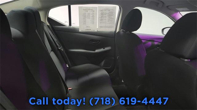 16" Steel Wheels w/Full Wheel Covers, Cloth Seat Trim, Radio: AM/FM w/RDS/MP3/Aux-In, Body Colored Splash Guards (4-Piece), Clear Rear Bumper Protector, Carpeted Floor Mats w/Trunk Mat, 4 Speakers, NissanConnect featuring Apple CarPlay and Android Auto, Auto High-beam Headlights, Blind Spot Warning, Front beverage holders, Variably intermittent wipers, Trip computer, Traction control, Tilt steering wheel, Telescoping steering wheel, Steering wheel mounted audio controls, Split folding rear seat, Speed-sensing steering, Speed control, Remote keyless entry, Rear window defroster, Rear side impact airbag, Rear anti-roll bar, Radio data system, Power windows, Power steering, Power door mirrors, Passenger vanity mirror, Passenger door bin, Panic alarm, Overhead console, Overhead airbag, Outside temperature display, Occupant sensing airbag, Low tire pressure warning, Knee airbag, Illuminated entry, Fully automatic headlights, Front reading lights, Front anti-roll bar, Four wheel independent suspension, Dual front side impact airbags, Dual front impact airbags, Driver vanity mirror, Driver door bin, Delay-off headlights, Bumpers: body-color, Brake assist, AM/FM radio, ABS brakes, Tachometer, Rear Parking Sensors, Front Center Armrest, Front Bucket Seats, Electronic Stability Control, Air Conditioning