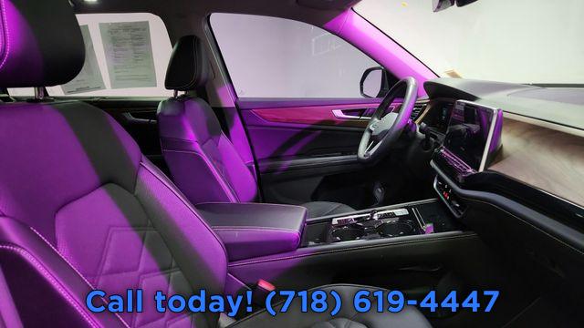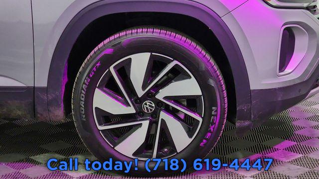 6 Speakers, AM/FM radio: SiriusXM with 360L, Radio data system, Radio: MIB3 Composition Media, Air Conditioning, Automatic temperature control, Front dual zone A/C, Rear air conditioning, Rear window defroster, Power driver seat, Power steering, Power windows, Remote keyless entry, Steering wheel mounted audio controls, Four wheel independent suspension, Speed-sensing steering, Standard Suspension, Traction control, 4-Wheel Disc Brakes, ABS brakes, Dual front impact airbags, Dual front side impact airbags, Emergency communication system: VW Car-Net Safe & Secure 5-year, Front anti-roll bar, Low tire pressure warning, Occupant sensing airbag, Overhead airbag, Rear anti-roll bar, Power Liftgate, Brake assist, Electronic Stability Control, Exterior Parking Camera Rear, Delay-off headlights, Front fog lights, Fully automatic headlights, Panic alarm, Security system, Speed control, Bumpers: body-color, Heated door mirrors, Power door mirrors, Spoiler, Turn signal indicator mirrors, Auto-dimming Rear-View mirror, Compass, Driver door bin, Driver vanity mirror, Front reading lights, Heated steering wheel, Heated/Actively Ventilated Front Bucket Seats, Illuminated entry, Outside temperature display, Overhead console, Passenger vanity mirror, Rear reading lights, Rear seat center armrest, Tachometer, Telescoping steering wheel, Tilt steering wheel, Trip computer, 3rd row seats: split-bench, Front Bucket Seats, Front Center Armrest, Heated front seats, Perforated V-Tex Leatherette Seating Surfaces, Split folding rear seat, Ventilated front seats, Passenger door bin, Alloy wheels, Wheels: 20" 2-Tone Machined Alloy, Rain sensing wipers, Rear window wiper, Variably intermittent wipers, 3.60 Axle Ratio